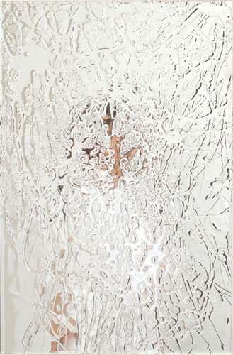 また椛田ちひろの未発表の鏡を使った作品が出品されます。こちらは先月まで一部限定で公開していたものでした。出版されたばかりの椛田のカタログの表紙にも使われている鏡を使った作品は昨年6月のアートフロントギャラリーでの展覧会で発表されたものです。このタイプの作品は現存するものはほんの数点のみ。今回展示するのはさらに珍しい正方形の鏡です。