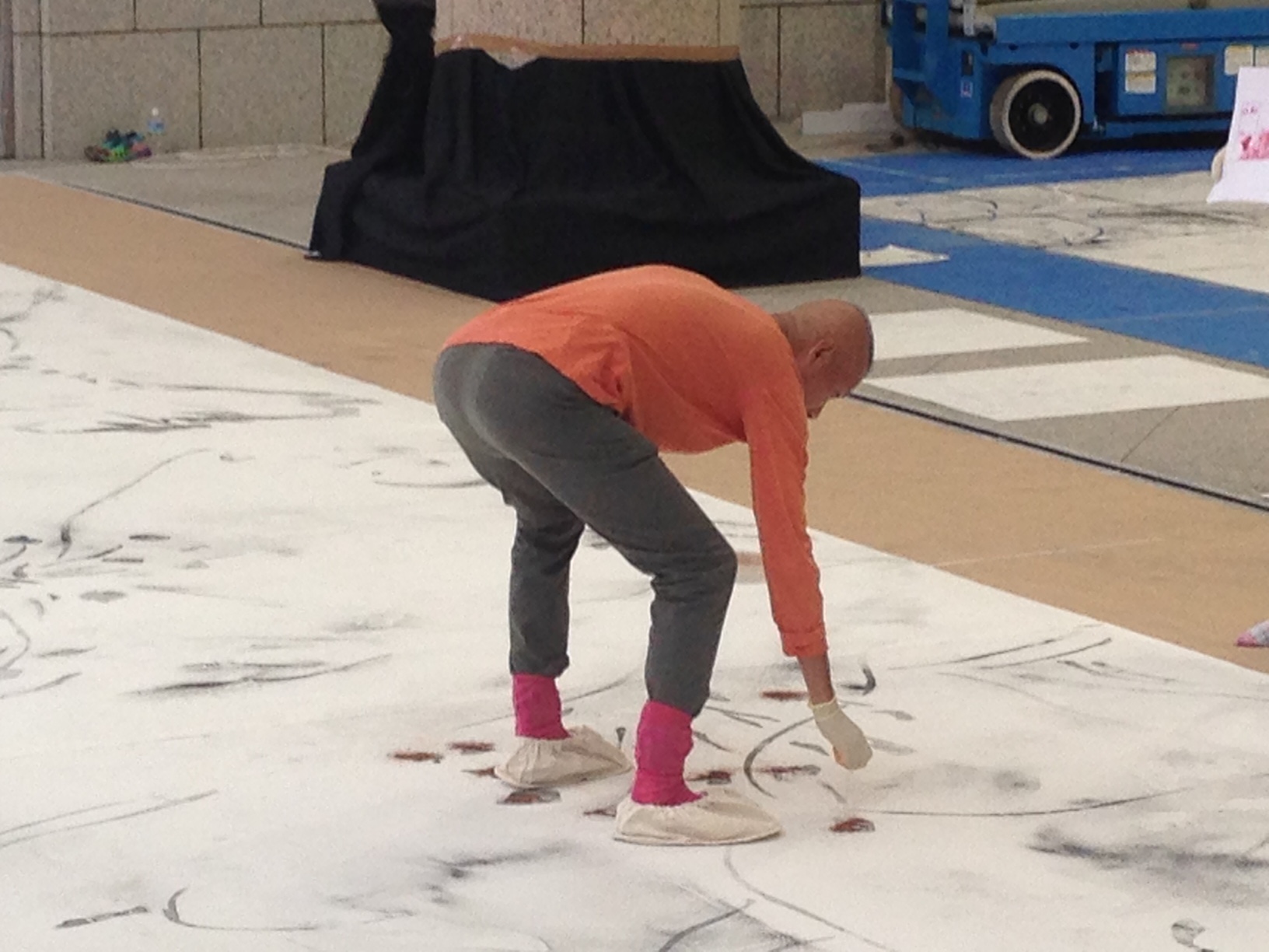 蔡さんの火薬ドローイング制作が横浜美術館行われました。火薬を撒いて、爆発させることで紙に画像を定着させる絵画は、蔡さんが長年手がけているものですが、実際に爆発を目の当たりにするとあまりにも一瞬のできごとで驚いてしまいます。
