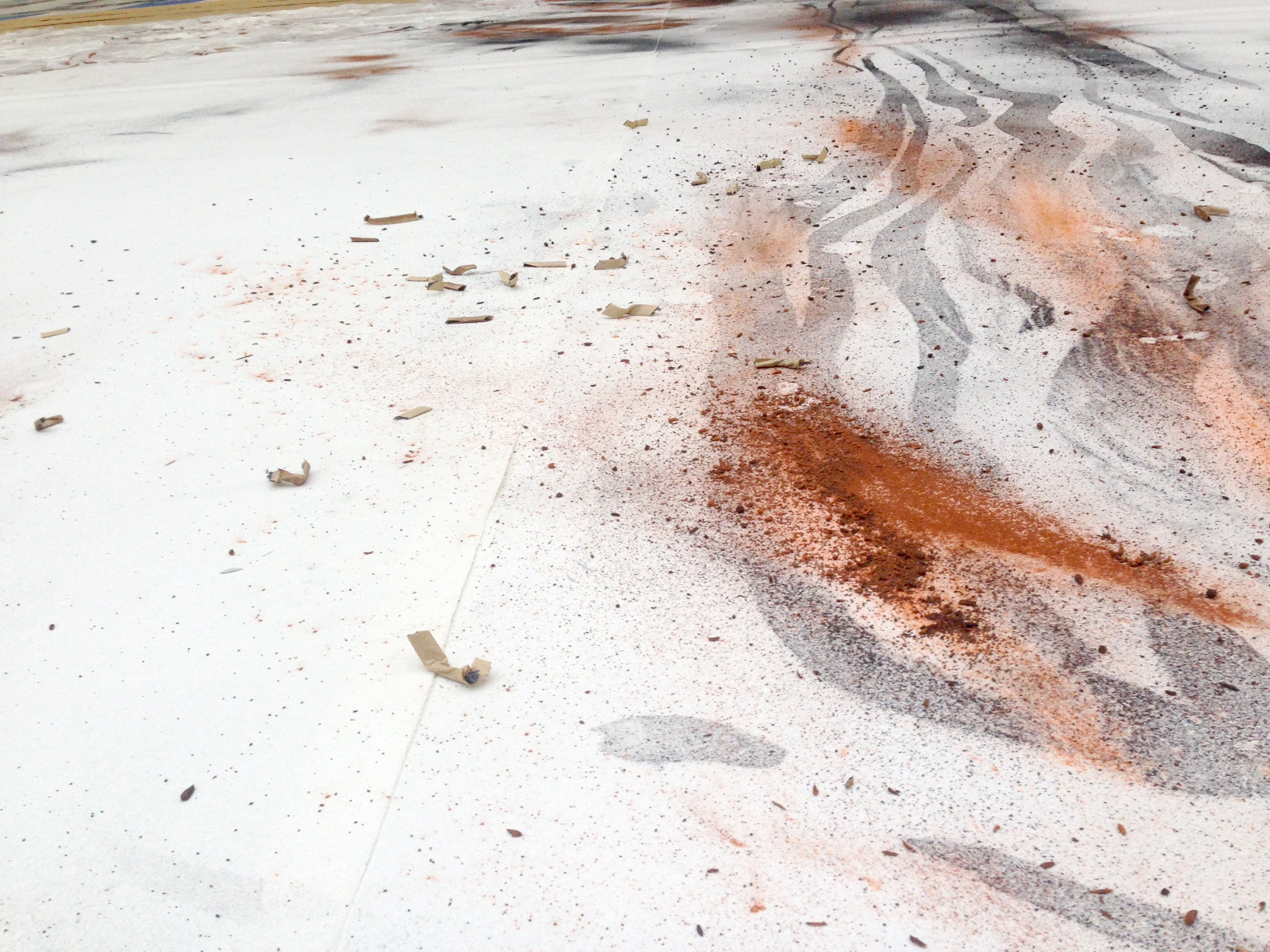 現在、アートフロントギャラリーで展示中の蔡國強の火薬ドローイングは、すべて7月25日の越後妻有大地の芸術祭前夜祭にて制作されました。