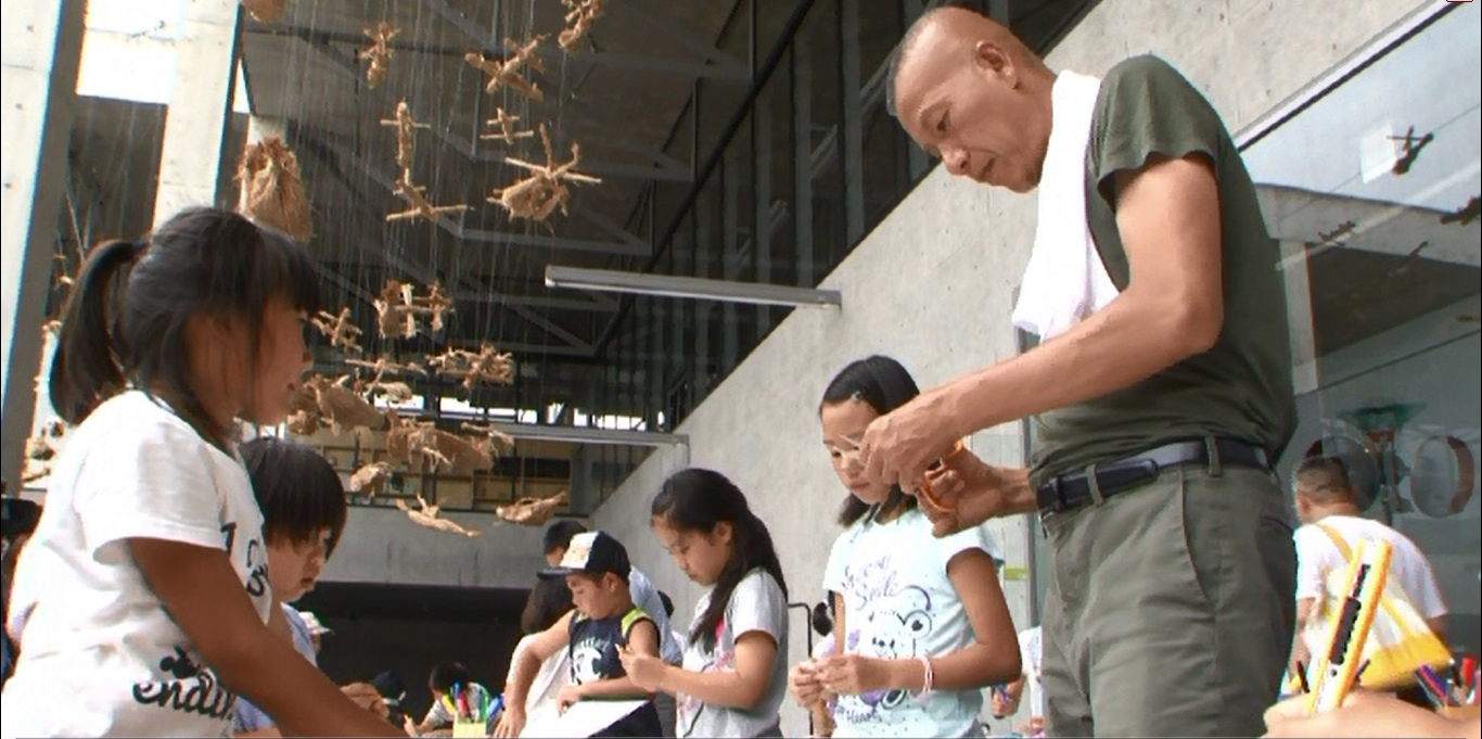 アート・アイランドはインターネット上にデザインアプリを使ってバーチャルな絵を描くという企画で、パソコンさえあれば誰でも簡単に参加することができます。子どもたちがネット上でアイディアを交換し、交流することこそが東アジアの相互理解と平和のための第一歩になるという、蔡の強い思いから生まれたプロジェクトです。過去にはエジプトの砂漠の町で地元の小学生と作った大型の凧を挙げたり、南米で「子どもダ・ヴィンチ」展を巡回させたり、地域性を活かした展示を行ってきた蔡ですが、今回はリアルな島に立脚した架空のアイランドを育てていく点に特徴があります。