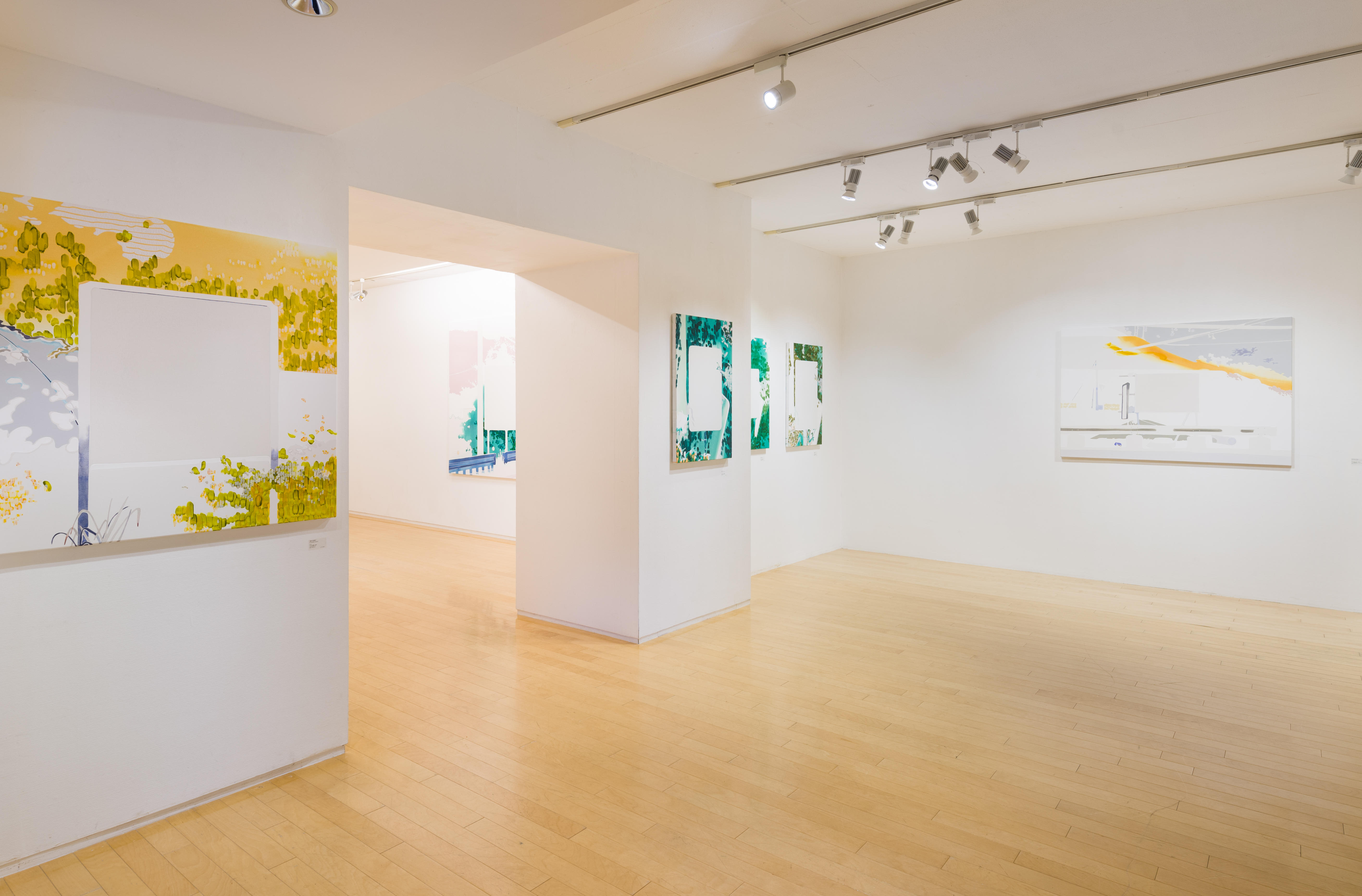 N:今までは諦めていた展示の仕方を今回実現することができました。大きなテーマは変わらず、自然と人工物のある風景ですが、窓の外の自然、自然界にない四角という矩形=窓、のコントラストが面白いと思っています。窓枠を描くこと、窓のように展示することであくまでも絵画を中心とした制作を大事にしていながらも見せ方で表現の幅を広げることができるのではないかと思い、次につながるモチーフを探してみたいと思っています。