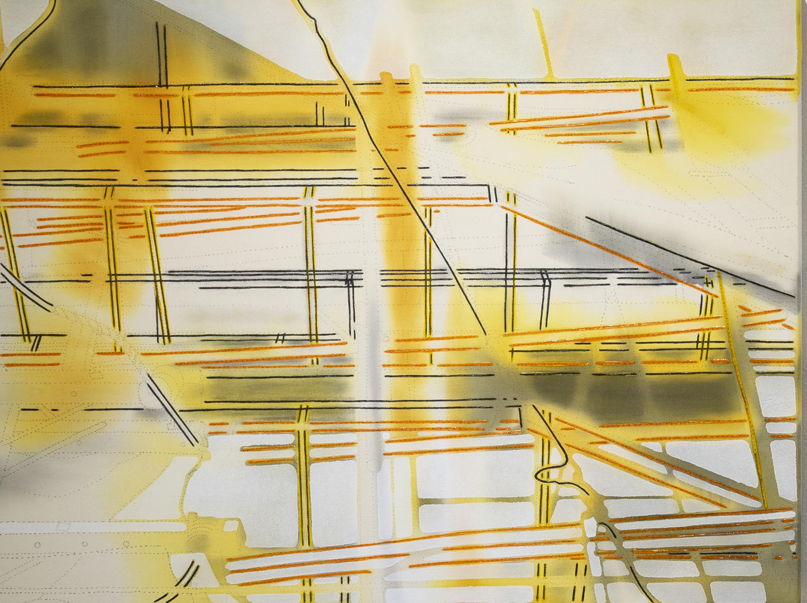 N:今回は線が交差していますし、ステイニング(註1)との比較でレイヤーが見やすい仕事になってます。同じモチーフですしモチーフや図像は過去のものと似ていますが中身はだいぶ異なるかと思います。前は偶然の結果の現象、今回は途中まで一緒ですが最後に絵画に引き戻す仕事が加わった感じです。