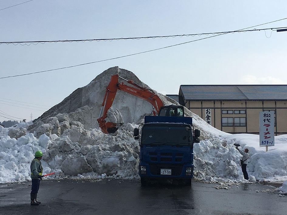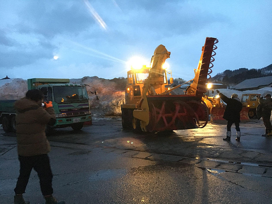 K:サウンド・アーティストの荒木優光さん、映像作家の松見拓也さんと一緒に、もう一度冬の間にリサーチにいきました。実際に働く除雪車を見て、動きを見たり、飛ばされた雪をクローズアップして撮影したり、また除雪車が働いた痕跡 ―雪の壁、積み上げた雪山、そういったものを重点的に撮影しました。