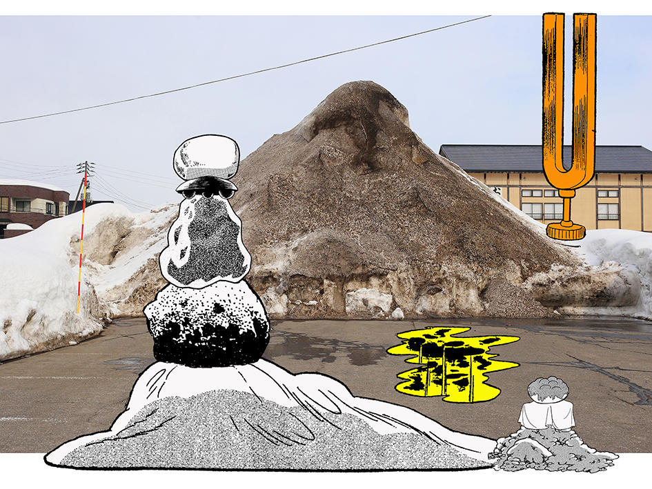 金氏(以降K):初めて越後妻有に2017年の秋に視察に行きました。土地の特徴、地理や気象、歴史の話を聞きながら、中でもとにかく凄い豪雪地帯であること、雪があるとないとで全く違う世界になってしまうという話に驚かされました。初めて行ったのは10月でまだ雪は降っていませんでしたが、大きな除雪車が停まっていて、その存在感や迫力を感じました。雪のないところで見るものすごい力を持った重機、という状態が不思議で、重厚感は確かにあるけれど、働いていないので宙に浮いているような感じもある。その感覚が、SFの世界に近く思えたのです。
