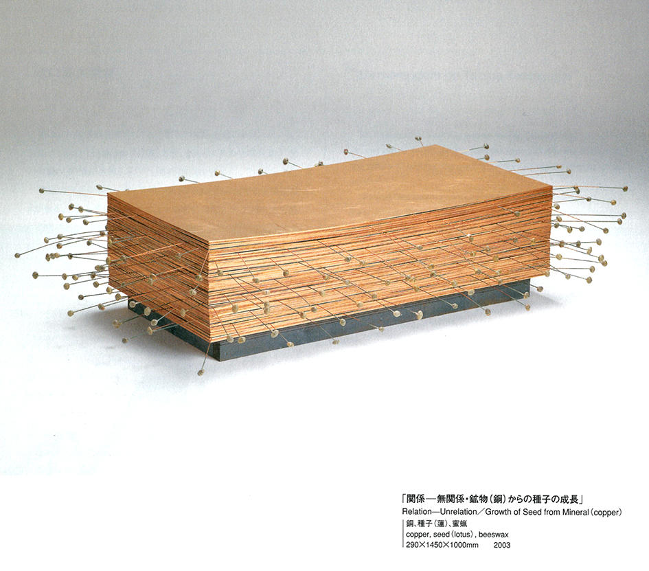 河口さんの作品を私はそんな考えの中で拝見してきた。「生理の封印」は強い作品を生み、調和への志向は、見えない物質から生命の種一般へ向かっていったようにも思える。