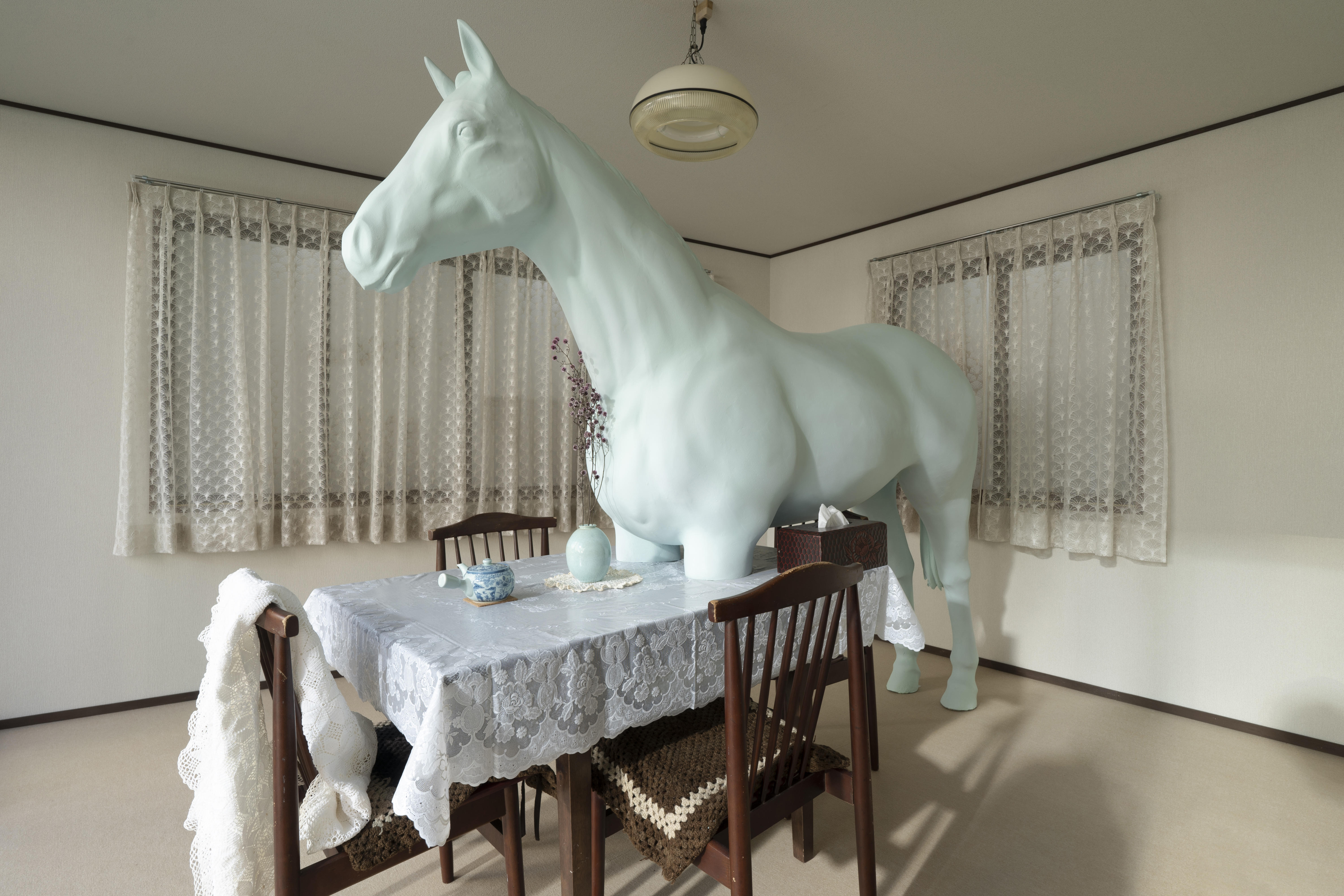 Fig.1: 冨安由真《The Pale Horse 蒼ざめた馬》2021年、個展「アペルト15 冨安由真 The Pale Horse」2021-2022年、金沢21世紀美術館(展示風景より)、撮影:野口浩史
