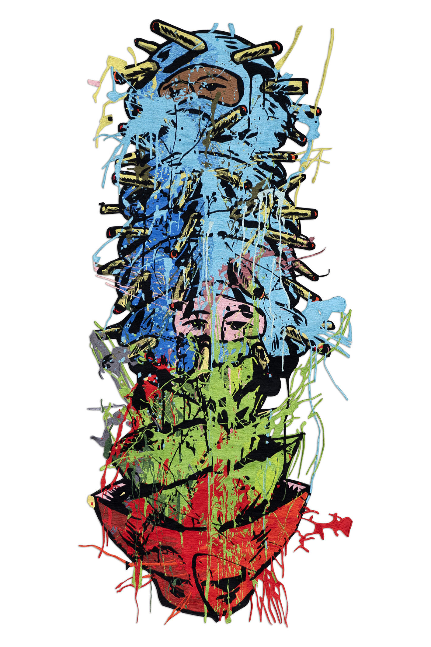 ヌグロホは、インドネシアのジョグジャカルタで生まれ、現在もジョグジャカルタを拠点に国際的に活躍するアーティストで、絵画、ドローイング、刺繍、壁画、彫刻、映像に至るまで幅広い表現方法を用いています。2013年のヴェネツィア・ビエンナーレ第55回国際美術展に参加し、国の玄関口とも言えるインドネシア・ジャカルタの空港には、ヌグロホの大型作品が展示されています。