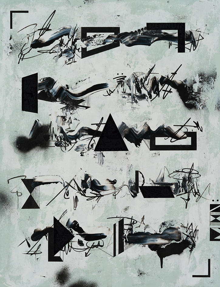カネコは、武蔵野美術大学を卒業後2009年からキャリアをはじめ、落書きに根差したグラフィックな線や文字、キャラクターで構成された作品を生み出しています。彼のルーツは幼少期に親しんだ80年代の日本の漫画で、その当時から描くということと書くという行為を同列の価値を見出し、モノクロにこだわった輪郭の強いグラフィックを生み出しています。2017年のアートフロントギャラリーでの個展からコンピューターのキーボードのピースを用い、デジタル化が高度な発達を遂げた現代社会において、膨大な情報にさらされた人々が感じる漠然とした不安をテーマにした作品を展開。ときに現れるモンスターや溢れんばかりの量のキーボードのピースは、膨大な情報があふれる昨今において、もはや人間が処理しきれなくなり、ひとりでに動き出す信号のメタファーの様です。一方でカネコは、作品に80-90sに世界中で親しまれたヴィデオゲームのコントローラーやラジコンの送信機などのガジェットもしばしば引用しています。これらはまだデジタルの黎明期、コンピューターの持つ可能性を当時のキッズたちにわかりやすく示してくれた存在でした。グラフィックも音もローファイでありながらも、足りない情報は彼らの想像力が十分に補っていた。そんなデジタルがまだコントローラブルだったころの追憶と郷愁をカネコは示していると言えるでしょう。