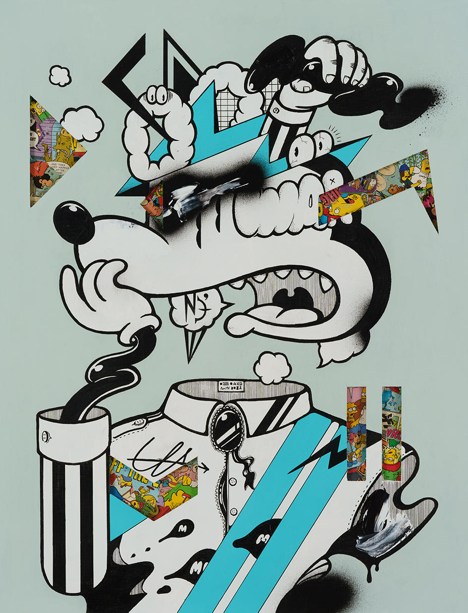 カネコタカナオ《SO》2021、650x500x30mm、アクリル、キャンバスボード、アクリル板、マンガ