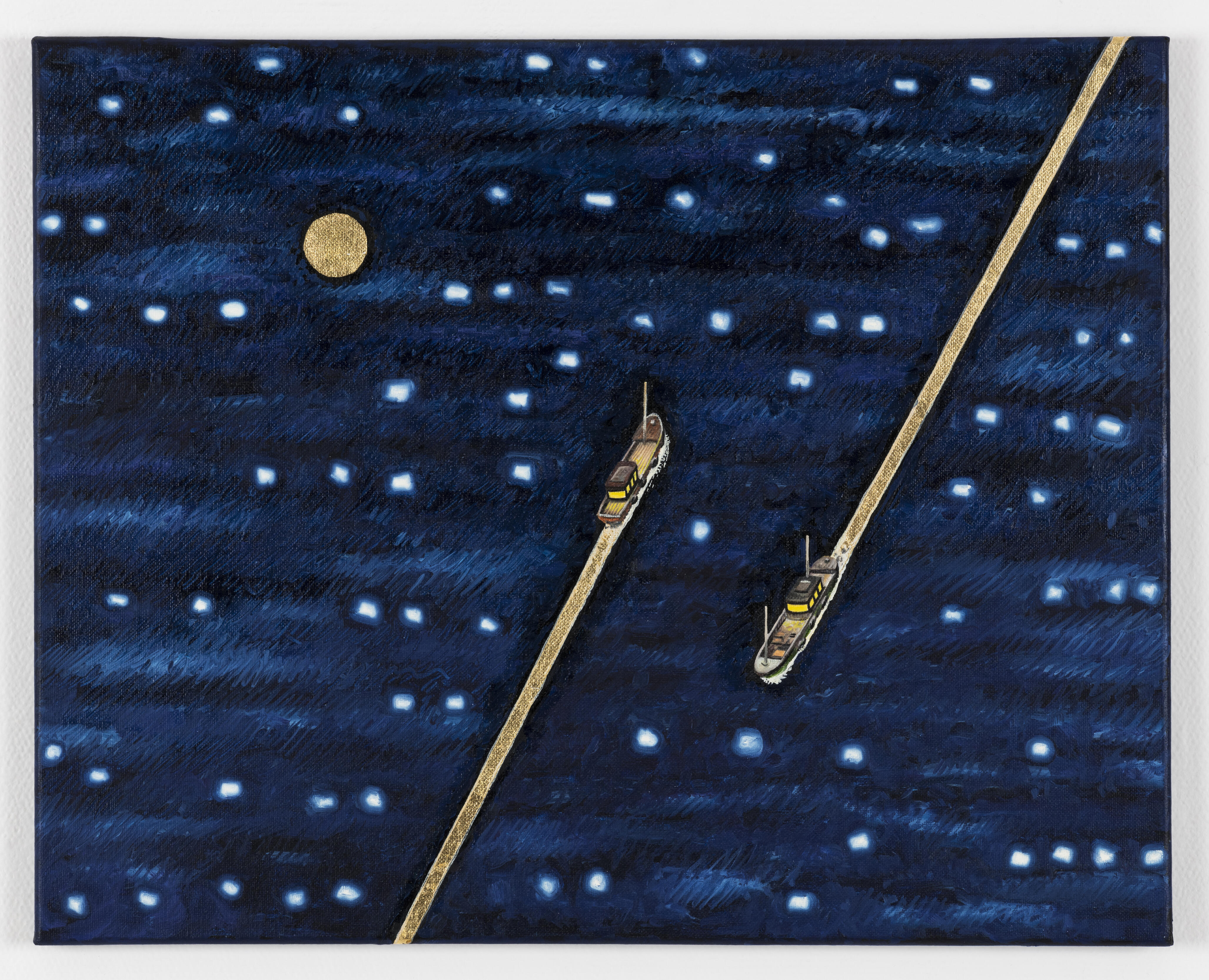 大岩オスカール《Two Ships under the Moon light 2》 2018 / キャンバスに油彩 / 405x510x15mm
