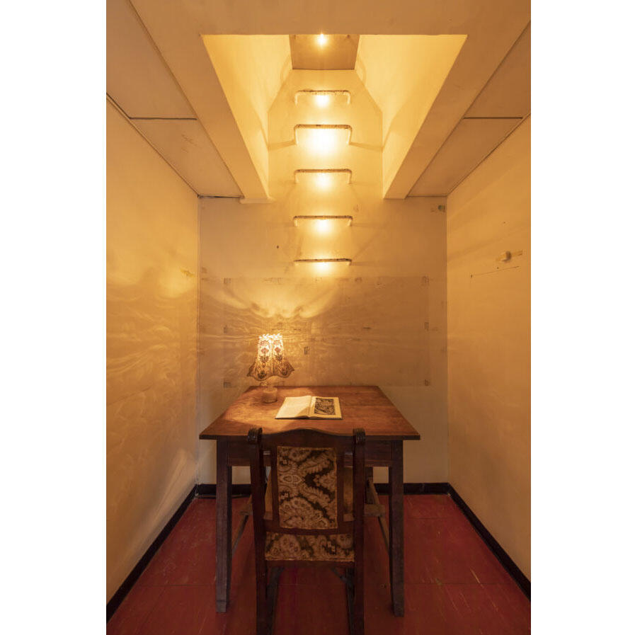 旧平三小学校の2階から3階にかけての階段および3階から屋上への梯子スペースに展示された「上昇」をテーマとした作品。「ヤコブの梯子」は、旧約聖書に登場するヤコブが夢で見た天から地へと伸びる梯子のこと。また、「Ascension」とは日本語で「上昇」を意味するが、キリスト教においては「天国に魂が昇る」ことを表しており、階段を登り作品を鑑賞する行為を通じて、答えの出ない「死」について問いかけている。