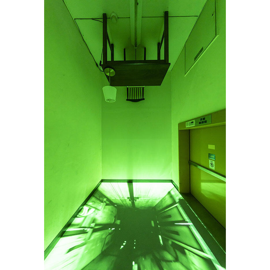 「下降」がテーマの作品。作家自身が幼少期に見たエメラルド色の塔の内部を落下する夢と、『オズの魔法使い』に登場する架空の都市「エメラルド・シティ」に由来する。会場が縦方向に長いことから《The TOWER》と名付けられたこの作品は、塔が崩落し人々が落下する様子の描かれたタロットカード「The TOWER」が重要なモチーフとなっている。