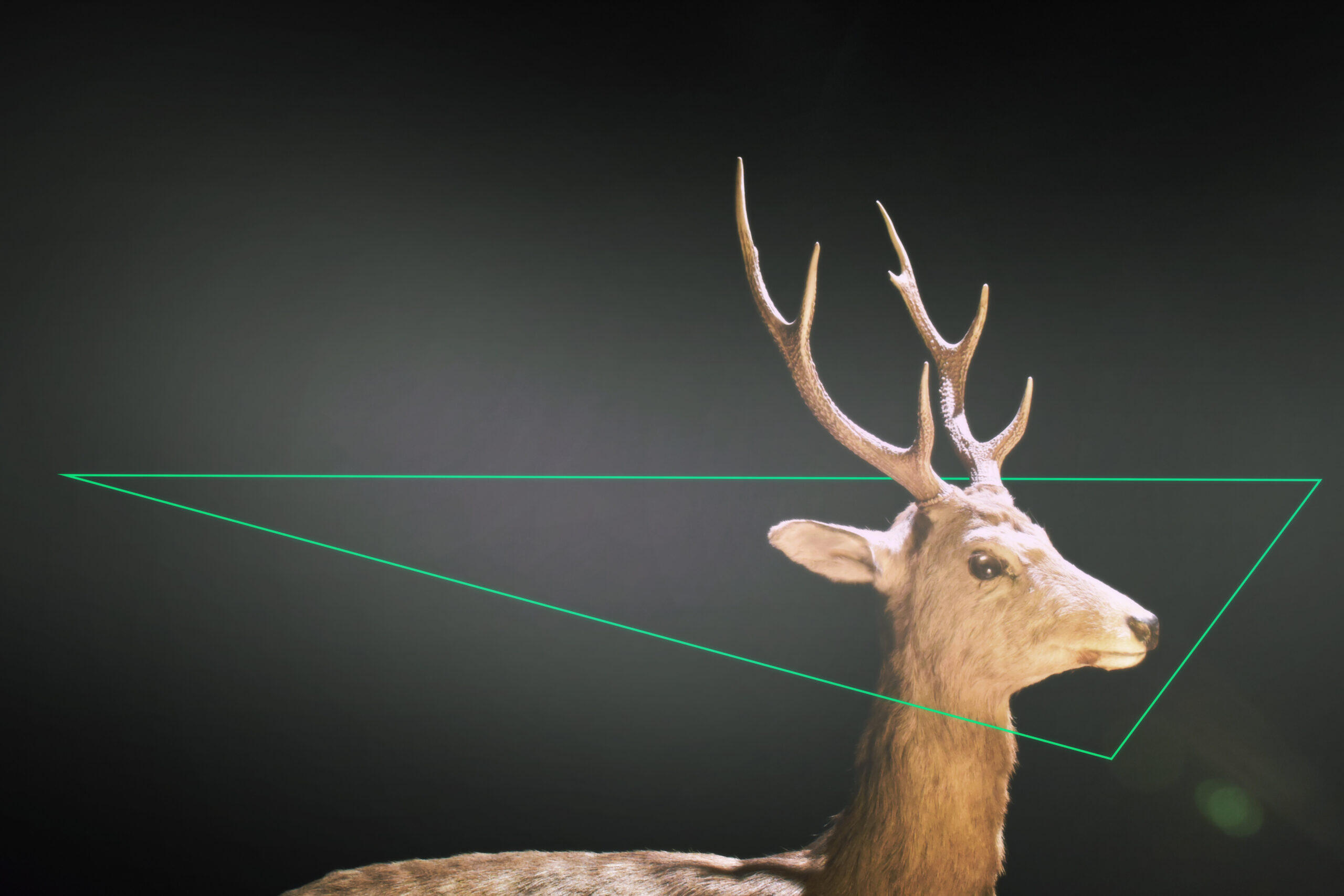 会場にある3つの冨安の作品のうち、1つ目の「上昇」、2つ目の「下降」というテーマに続く本作は「水平/均衡」をキーワードに制作された。作品のモチーフとなっている「3」という数字は、ピラミッドやキリスト教の三位一体など古くから思想や信仰の中で使用されてきた。三角形は安定を意味し、また「第三者」「三人称」などは中立や客観性を意味する概念でもある。冨安の重要なテーマである「視点の重なり」を軸に、暗闇の理科室で幻想的な体験を創出する。