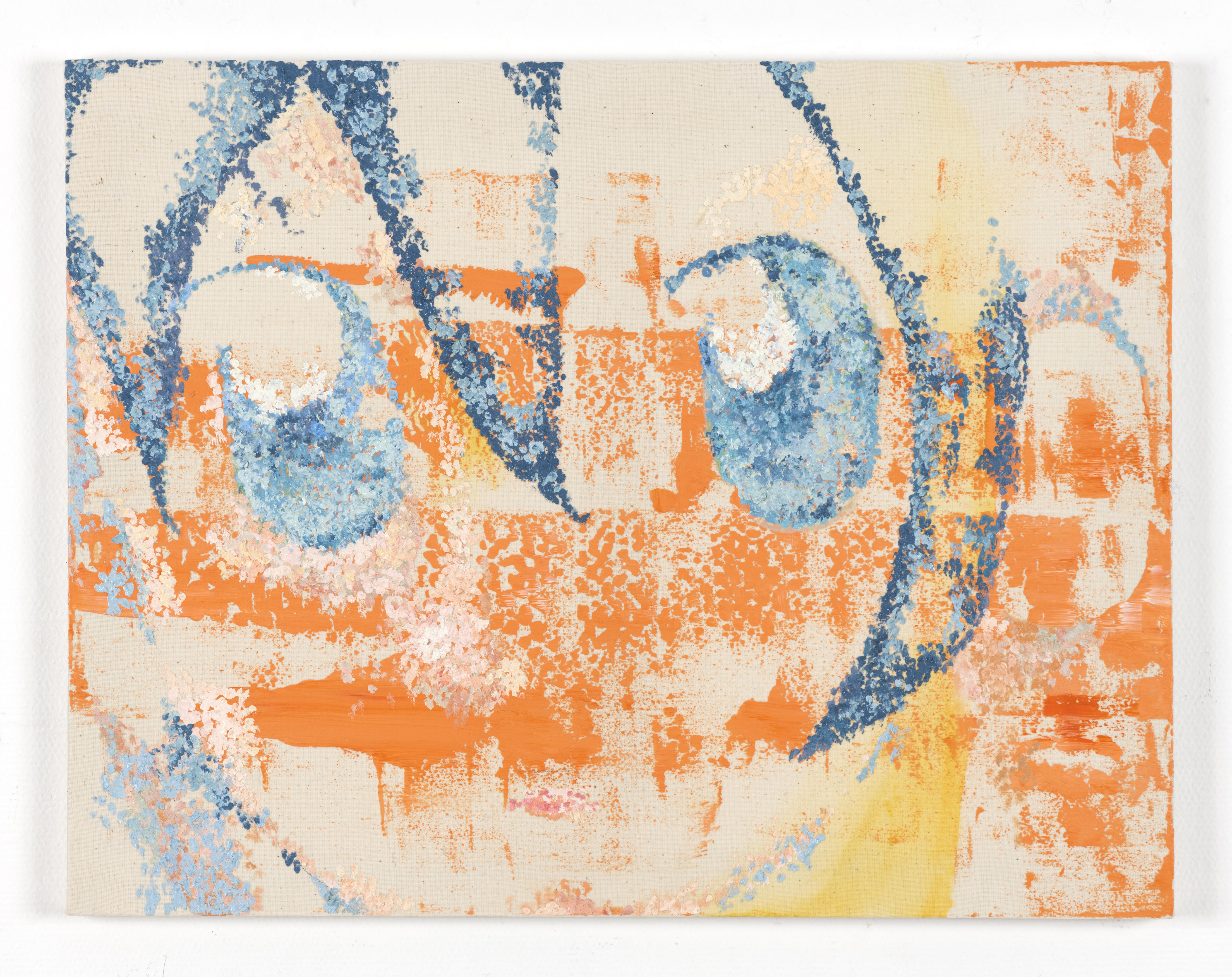 一見すると、豊かな彩りと軽やかな線で少女の顔が描かれているかのように感じる川獺の作品。その構成は、文字や画像から抽出した何かを表すために繋がれていた情報としての線が作品上で解体され描かれている。再構築した線同士の位置や重なりから複雑なシミュラクラ現象(人は3つの点が逆三角形に配置されていると「人間の顔」に見えてしまうという錯覚や本能のこと)のように鑑賞者に顔を描き起こさせる。無数の線や丸の重なりは残像のように私たちの視覚に届き無数の顔が描かれているように感じるのだろう。