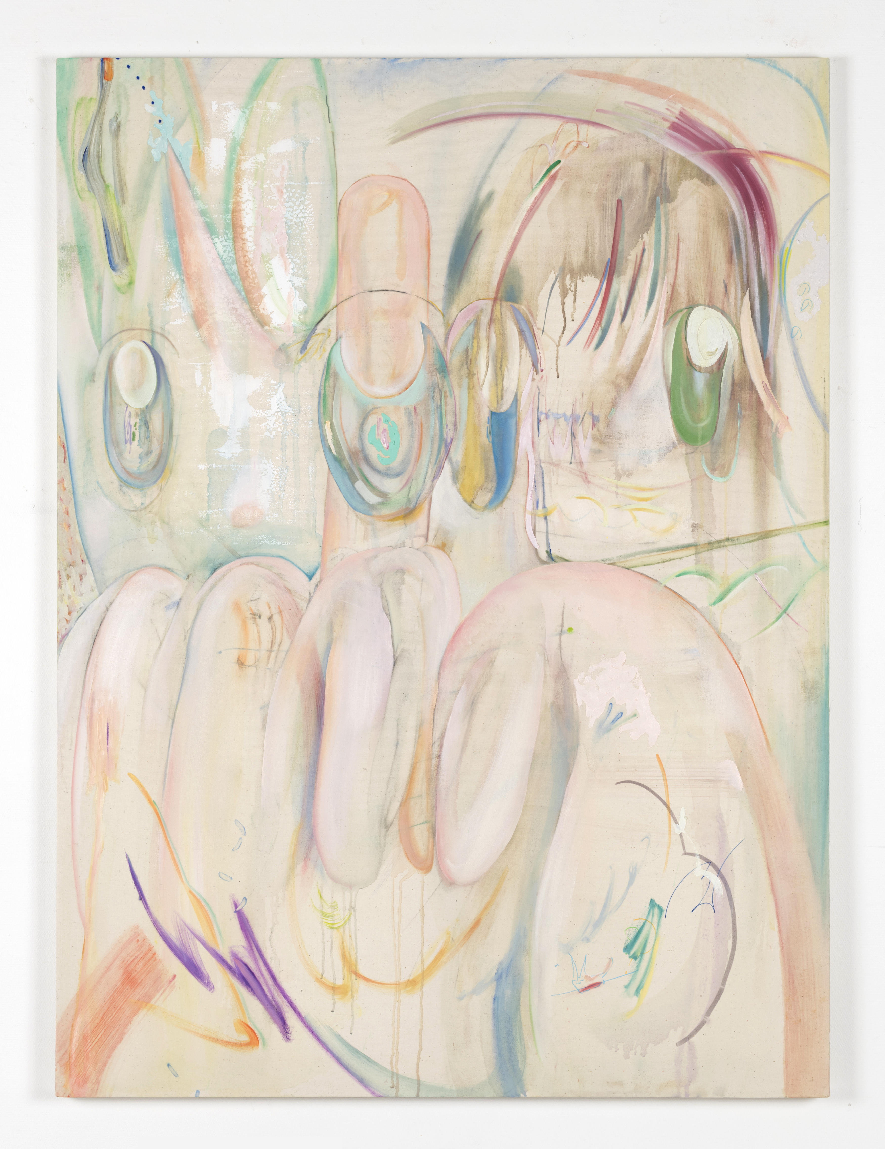 川獺すあ《here and there》2021 / 1303 × 970mm / 綿布に油彩、インク