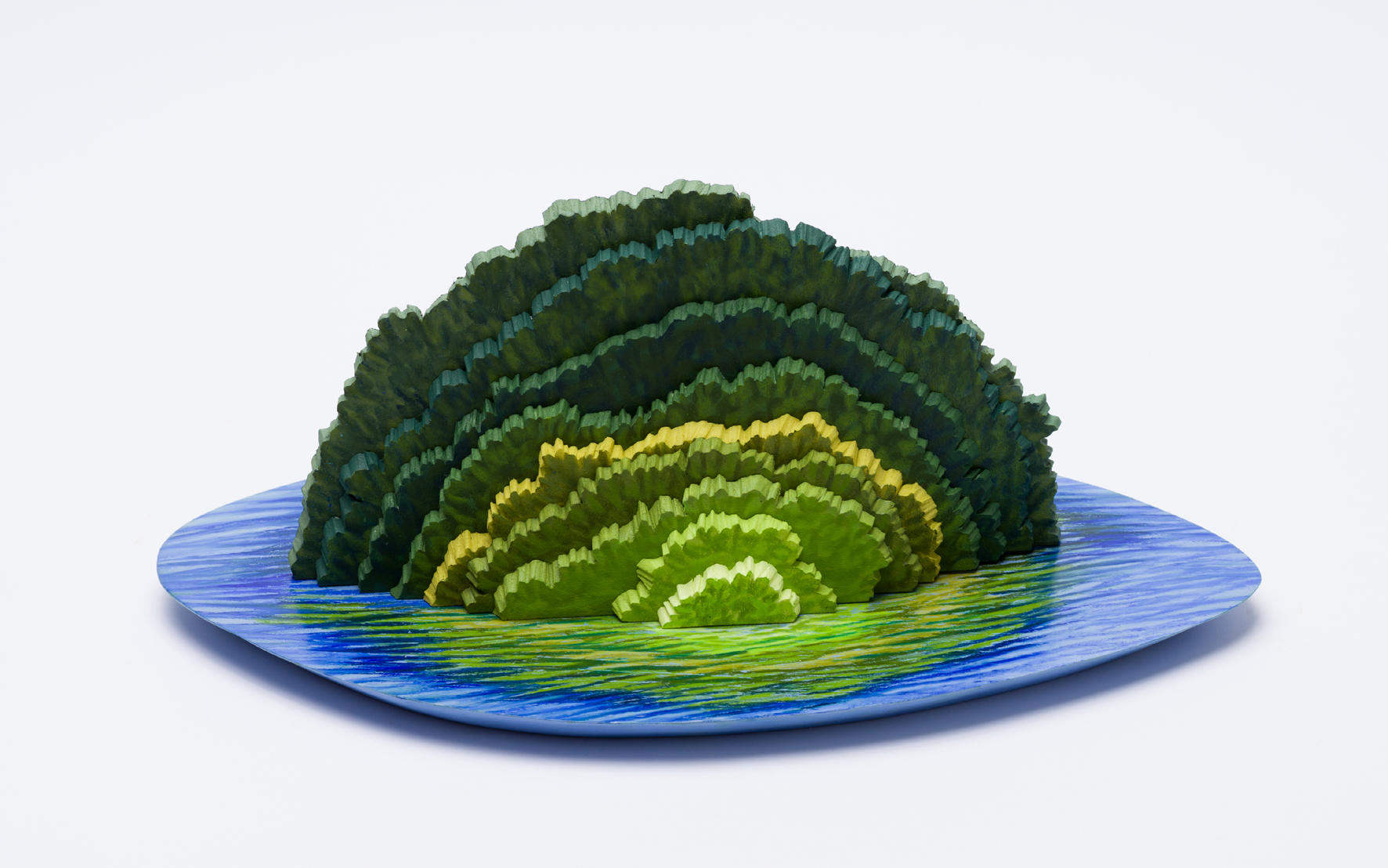 康夏奈《海は青い 森は緑》(4D-02)木、スチレンペーパー 、オイルパステル、クレヨン 2013 190x400x270mm