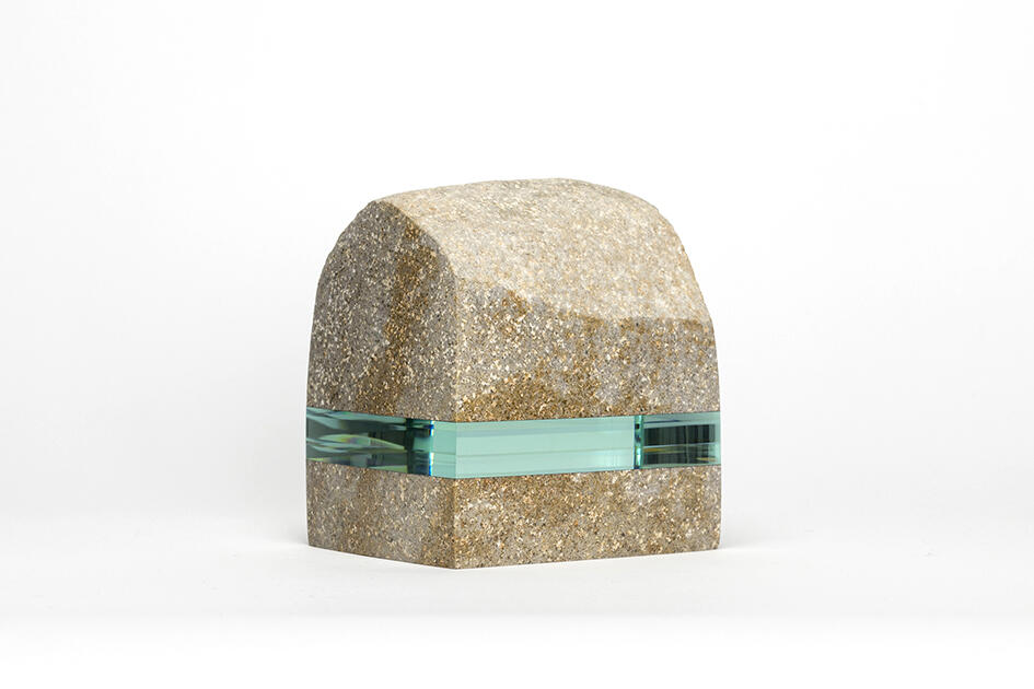 藤堂《Snow on the roof - 松之山黒倉》2022、信濃川支流石、積層ガラス 12.5 x 11 x 8cm