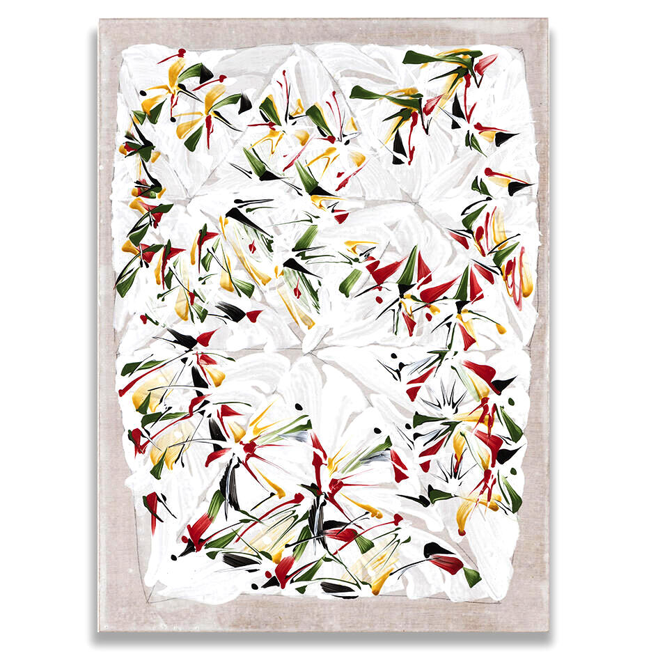 村山 悟郎《生成のドローイング[Rhizome]- 黄土・朱・緑》2022 パネルに和紙、アクリリック, 29.7 x 42 x 2cm