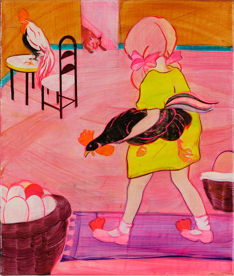 石田恵嗣《ニワトリ》2021 キャンバスに油彩 35 x 30 x 2cm
