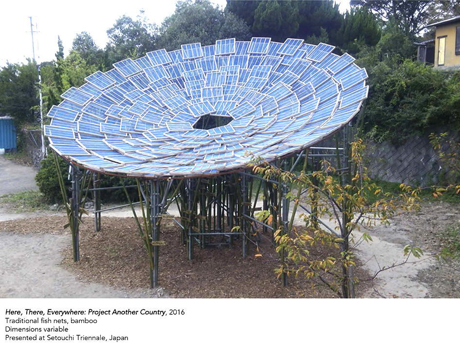 「2013年には金沢21世紀美術館で個展を開いた。金沢でもバジャという人々のくらしをテーマにした作品で、インドネシア、マレーシア、ボルネオ島の人々が国境によって自由に船で行き来できなくなってしまった社会問題をとらえている。そもそも彼等の子供たちが路上でラップをうたってはお金を稼ぐ姿をみてこのシリーズが始まったのだが、海の民族Sea Peopleの都市が浮かぶようなイメージでインスタレーションをつくった。また、美術館のある金沢のこどもたちとのワークショップを中心に展開し、アジアを代表するアーティストとして世界に向けこの作品を発信した。」