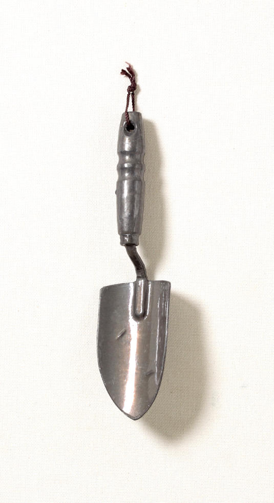 関係—種子・農具(ハンディスコップ) / 1996 / 鉄、木、鉛、種子(コスモス)/ 32.5 x 8.4 x 3.1 cm