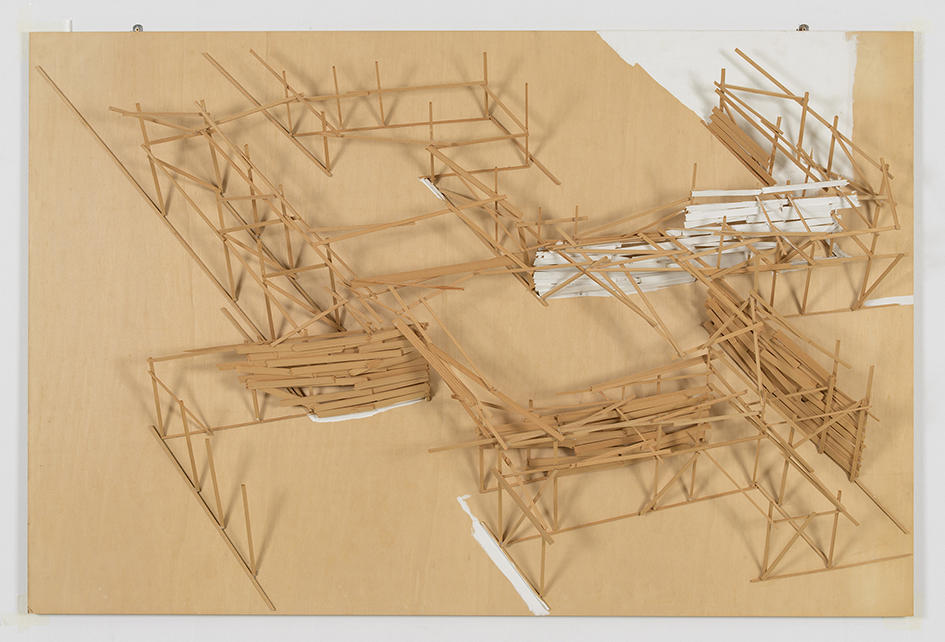"Project Begijnhof, Kortrijk no.14" 810 x 1220 x 100 mm, バルサ材、アクリル、合板, 1990
