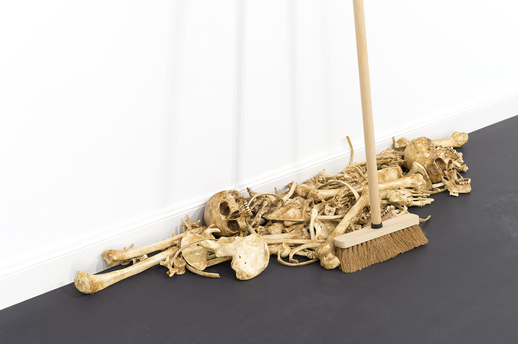 "Archaelogy"2016, 箒、黒い旗、どくろ、300 x 250 x 40 cm、Courtesy of the artist