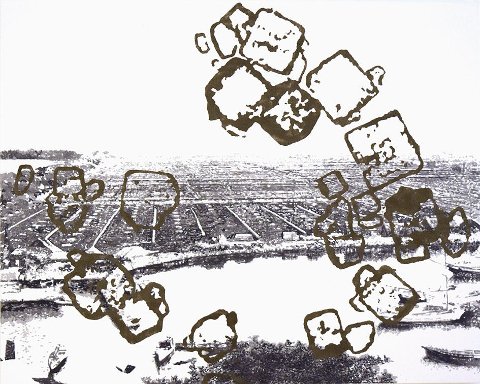 「坂出市」2019、土、アクリル、墨、パネル、綿布 他