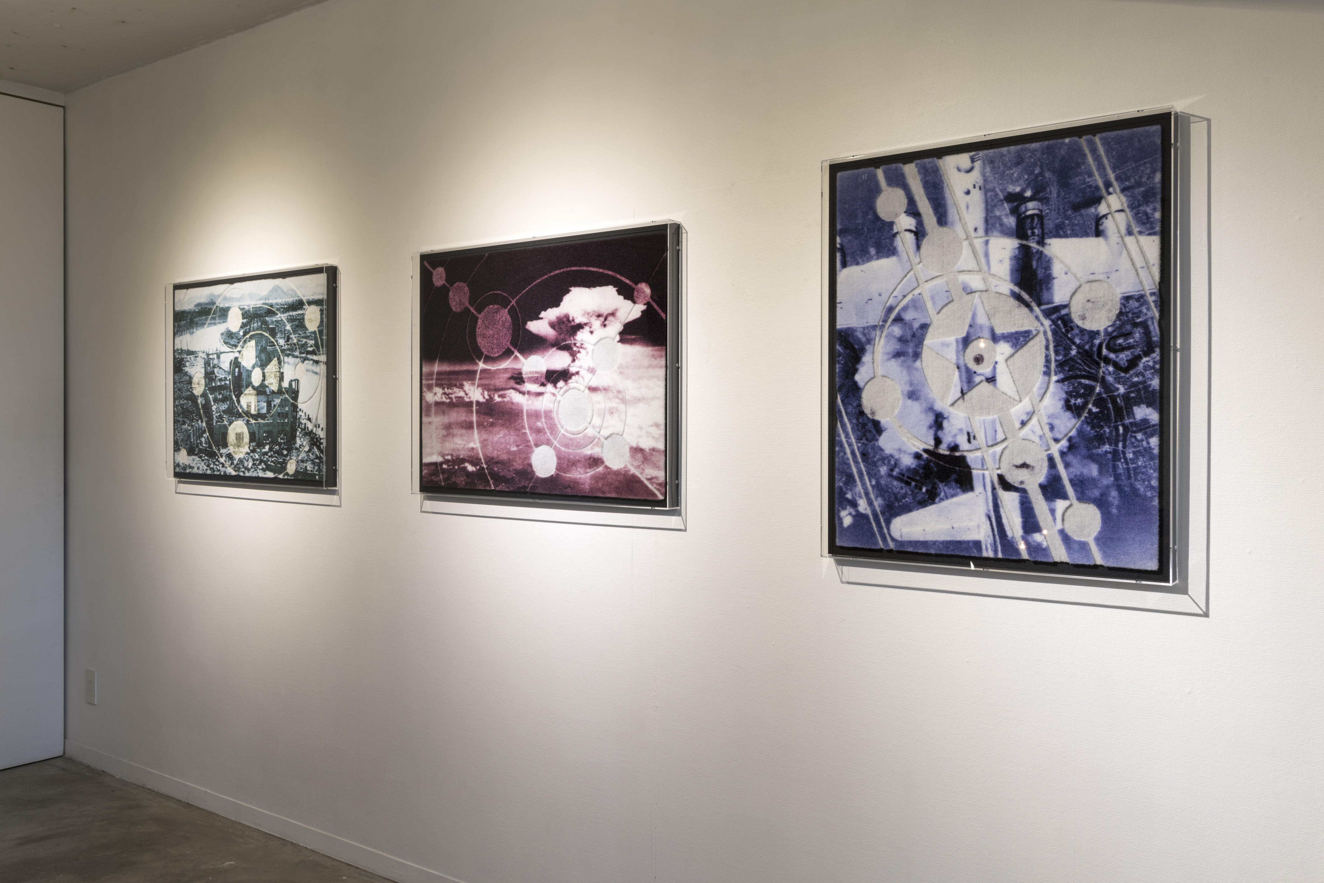 壁面の平面作品は、題材に使われている写真はアメリカ軍が本当に撮った写真です。原爆投下時の写真、キノコ雲の写真、投下後の原爆ドームの写真というものをベースにしています。