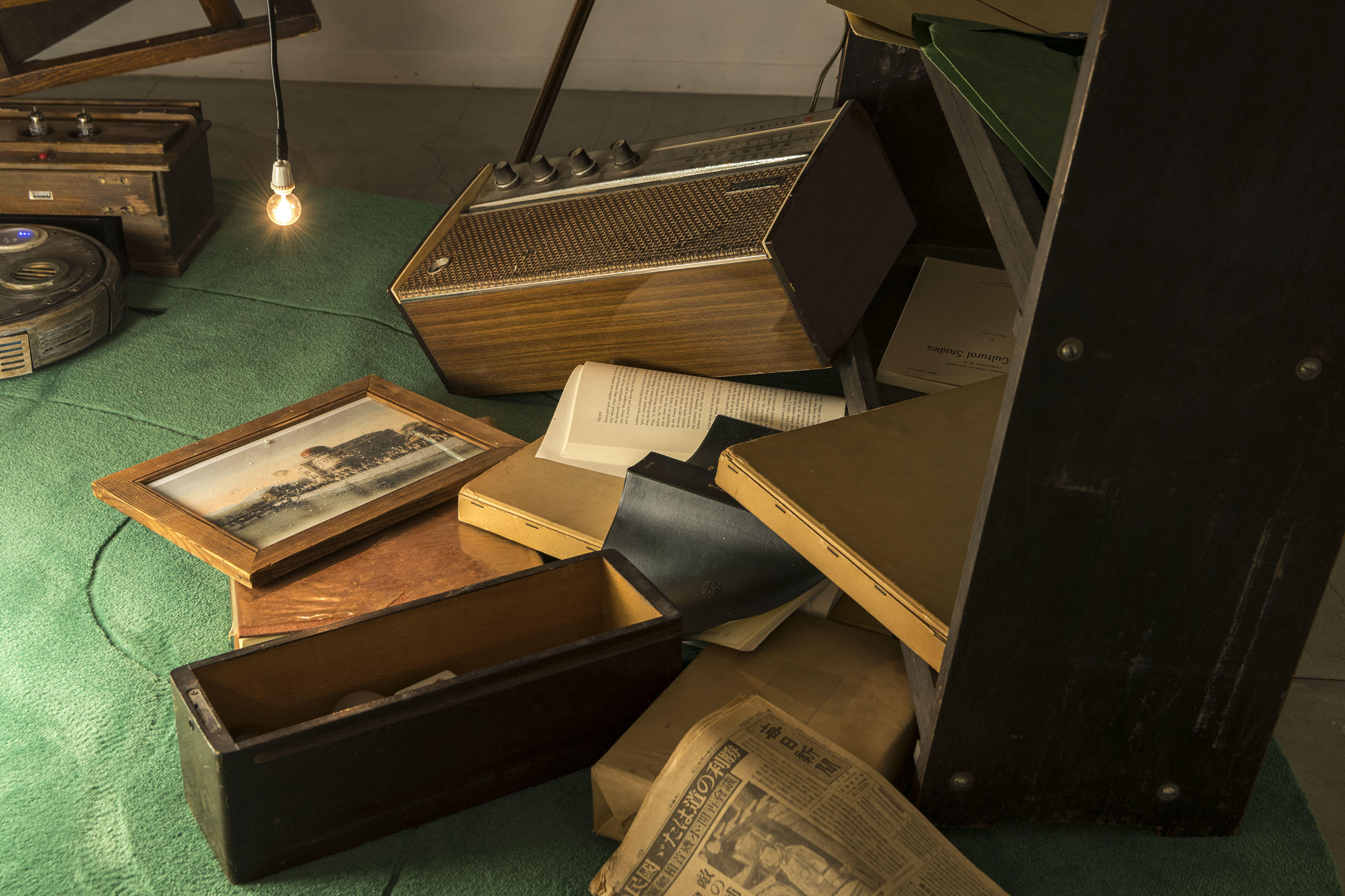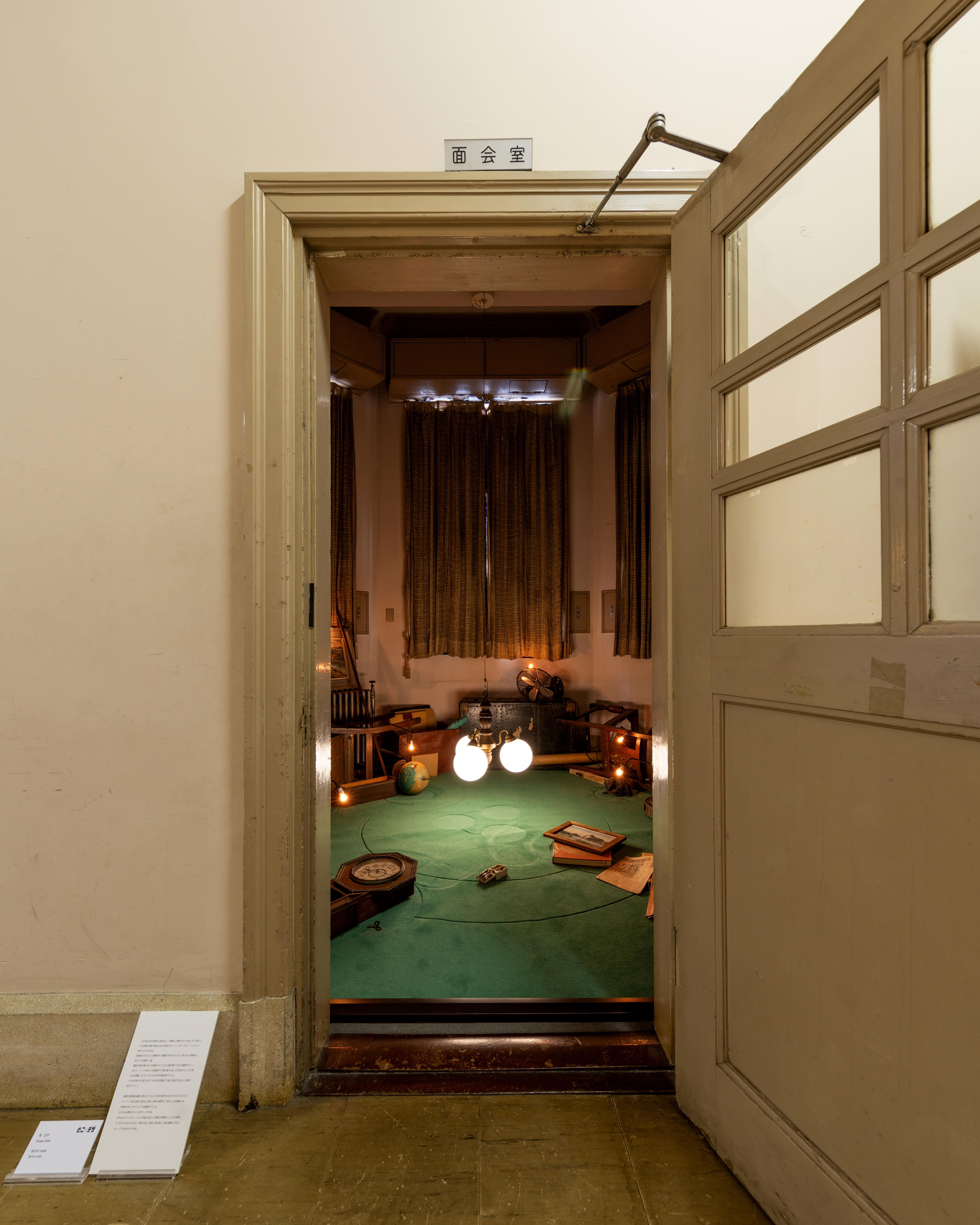 この公募は、本来美術館の展示室じゃないところに作品を出現させるというコンペティションなのですが、美術館が今改修工事をしていることもあり、今回は旧日本銀行広島支店という、原爆ドームや平和公園の川を挟んですぐ横にある被ばくを受けた建物で現代美術をやるというでコンペでした。僕はその中の面接室を使ったインスタレーションを展示しました。今回は、そこで展開したものをギャラリーの中でグレードアップさせて発表しています。