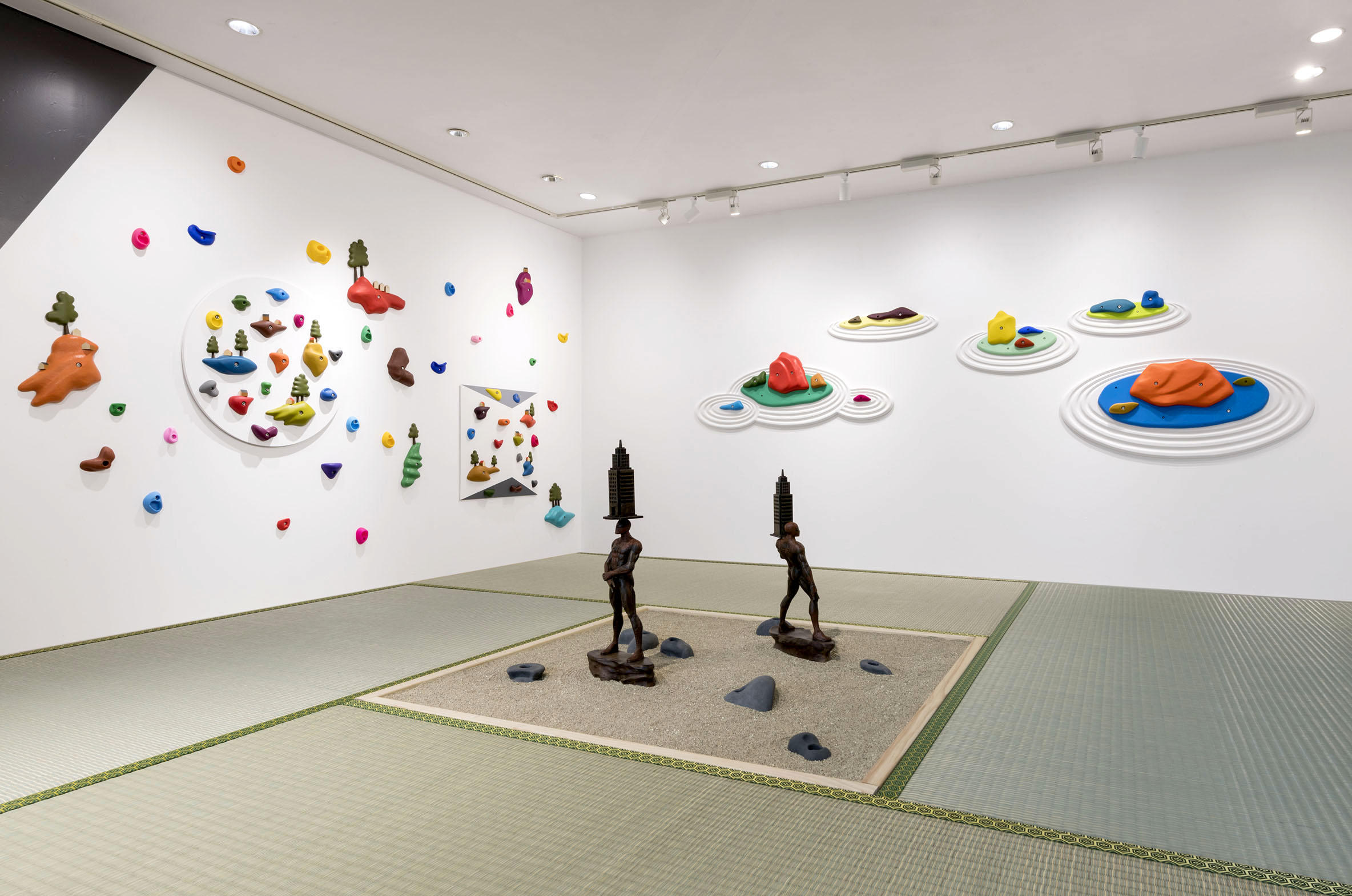 今回の個展では、二つ空間での全く異なるテイストのインスタレーションを展開しています。まずはボルダリングの様なカラフルなモチーフが印象的な「The garden」についてお話を聞きました。