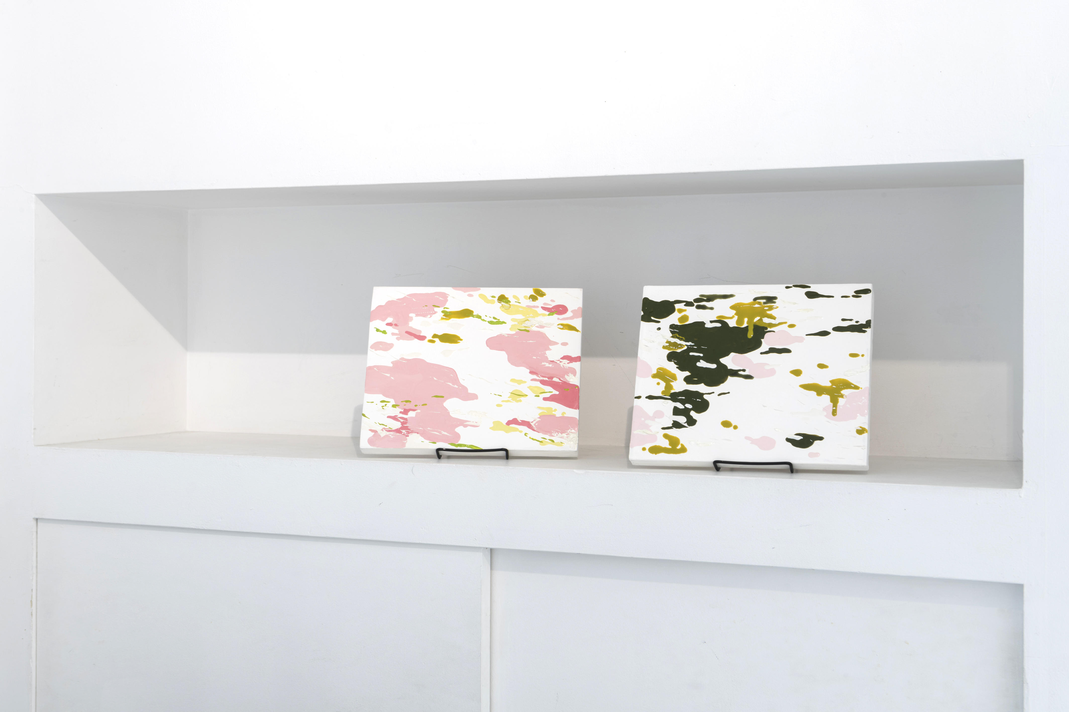左:《white out no.9》、右:《white out no.6》、各225x280mm、パネル、キャンバスに油彩、2022