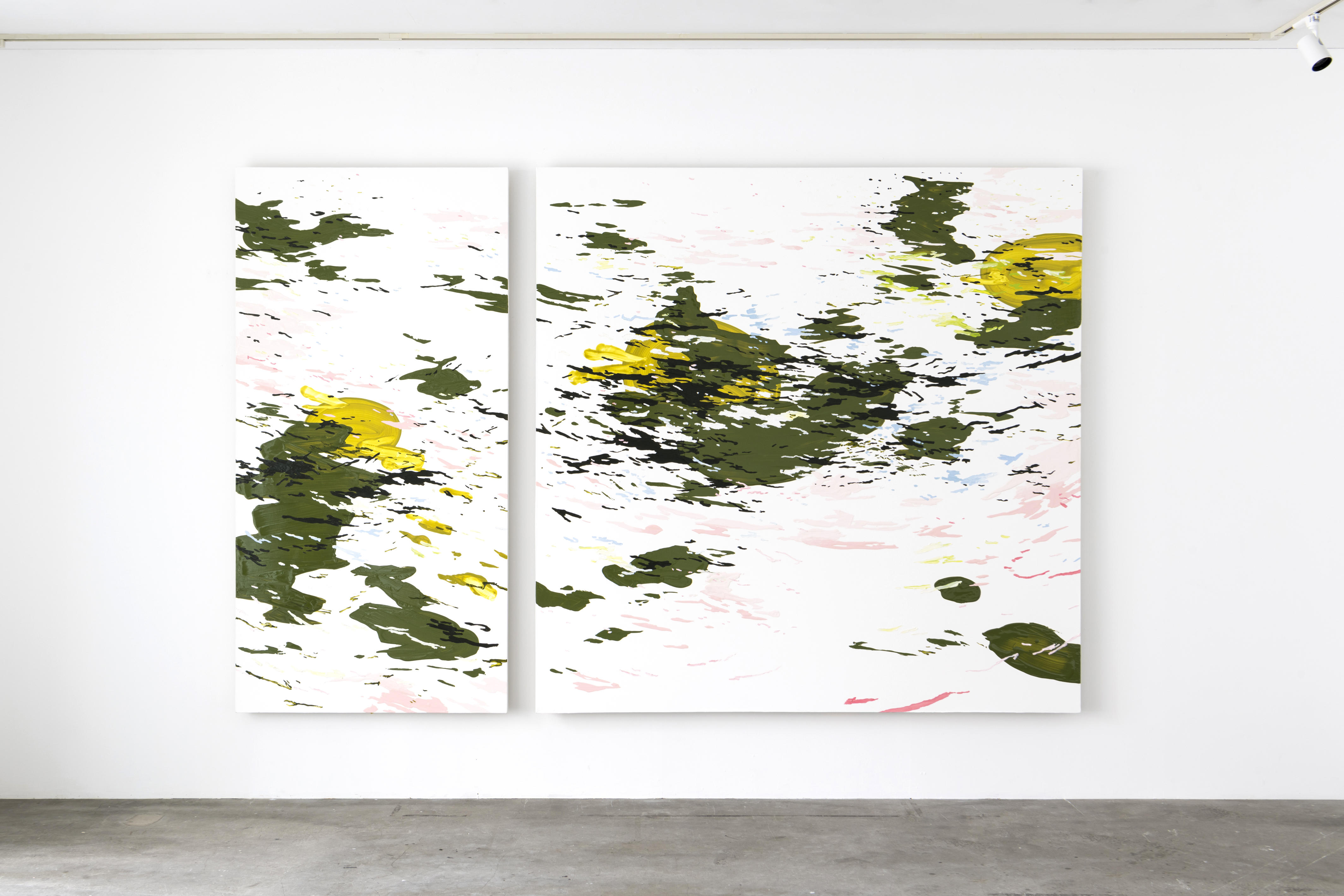 左:《white out no.2》1940x970mm、右:《white out no.1》1940x1940mm、キャンバスに油彩、2022