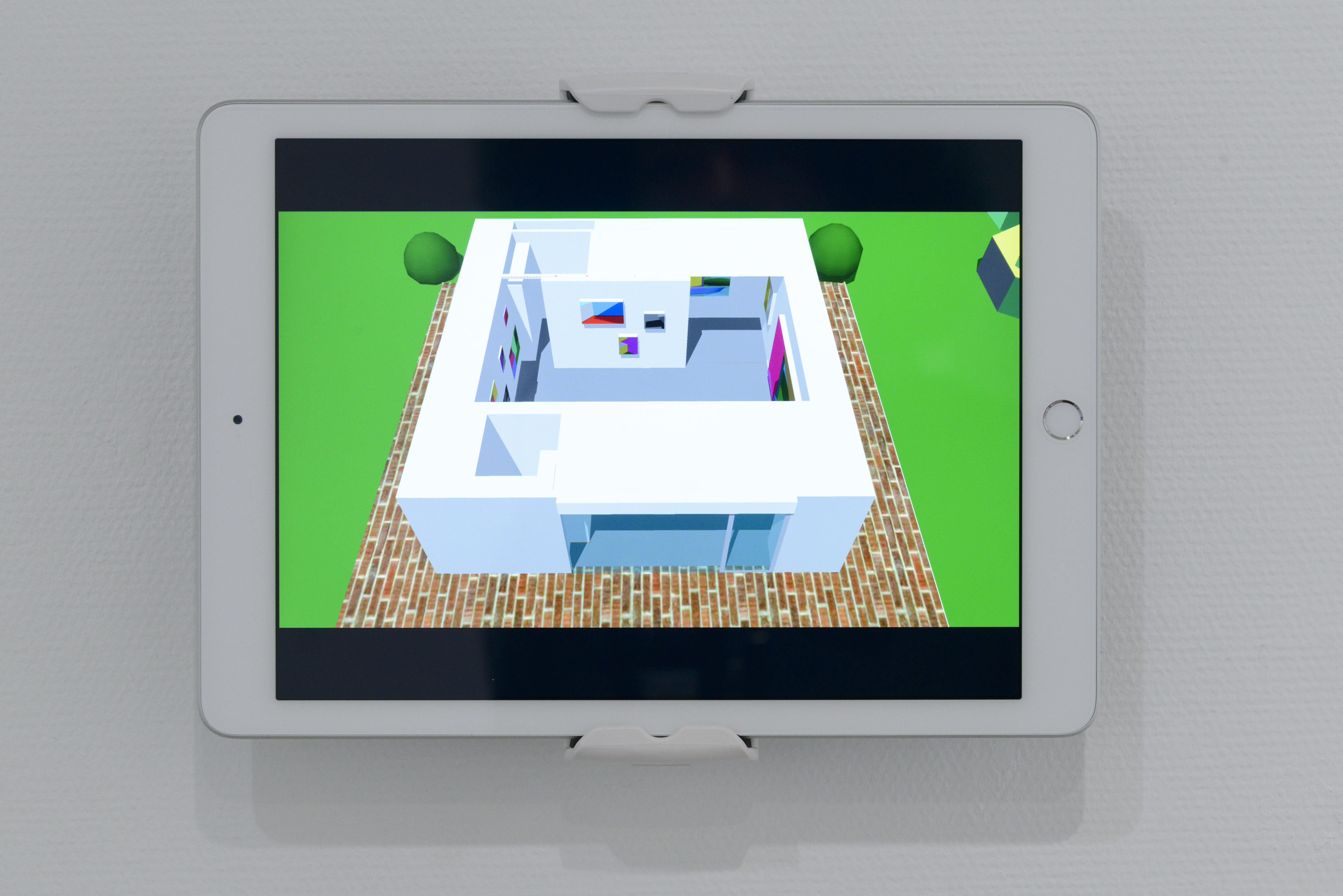 私がこの作品を始めたのはおよそ10年前で、そのころはまだARもVRも無く、そのような話がようやく出始めていたころだったとおもいます。フリーソフトを使って積み木みたいなものを積み上げるようなことから出発したのですが、私は絵描きであるというつもりでやってきたので、まず自分の絵を飾れるギャラリーを作りそこに絵を飾るという事を基本にフィジカルな絵画を描き、現実の空間に飾る。そんな入れ子の構造を創ることをただ単純に繰り返してきたんです。10年たち見直してみるとたくさんの建物と土地が構築され、仮想空間とフィジカルな絵画作品としてアーカイブされ、コンセプトと絵画自体も強度を持つ私だけの世界が出来上がっていました。私の作品はコンピューターを介しますが、その中だけで終わるのではなく現実の世界にリアルなものとして存在するということに大きな意味があると思っています。