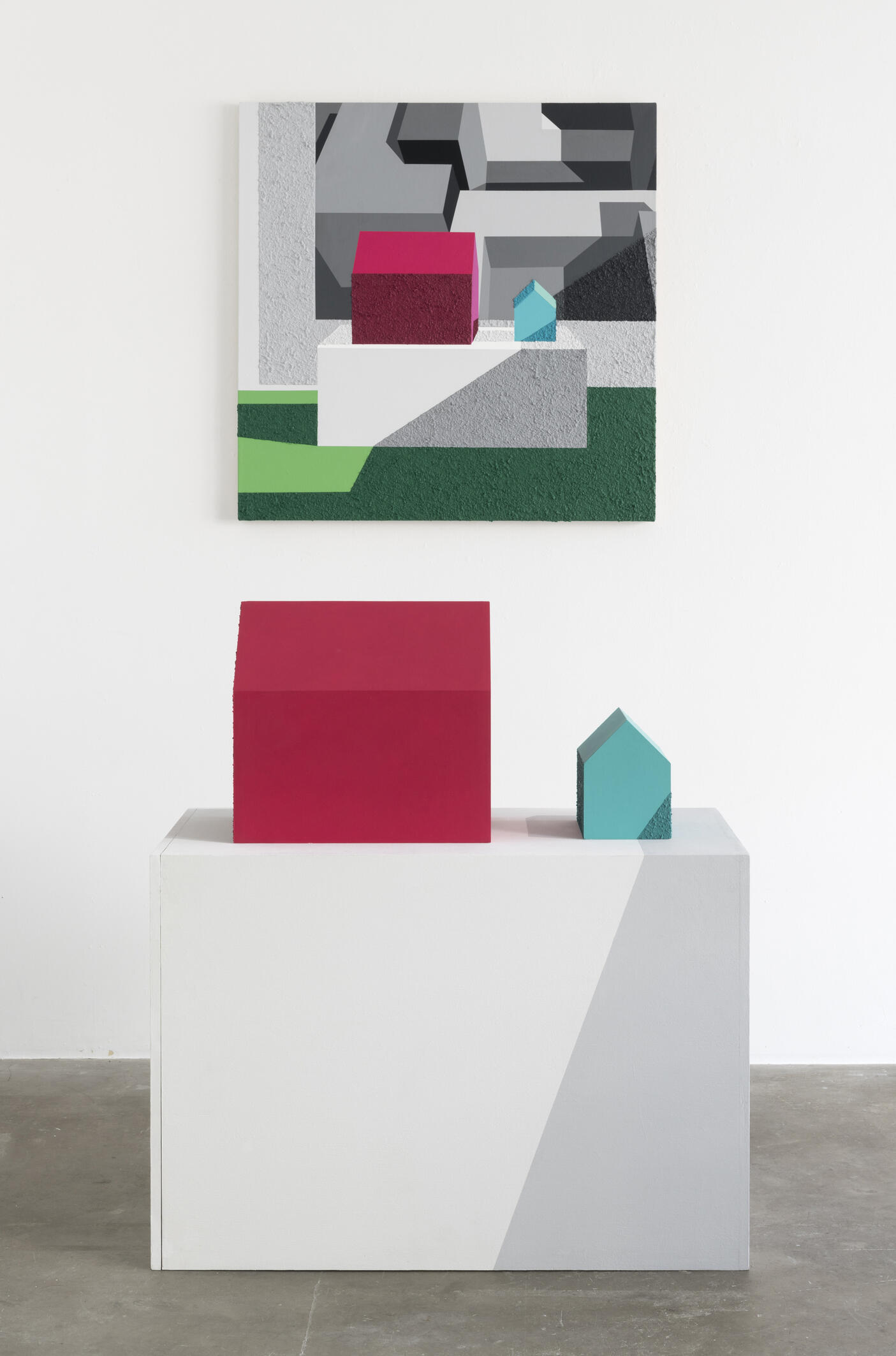 下《GARDEN-WHITECUBE sculpture Red/Green》2019、690x830x600mm