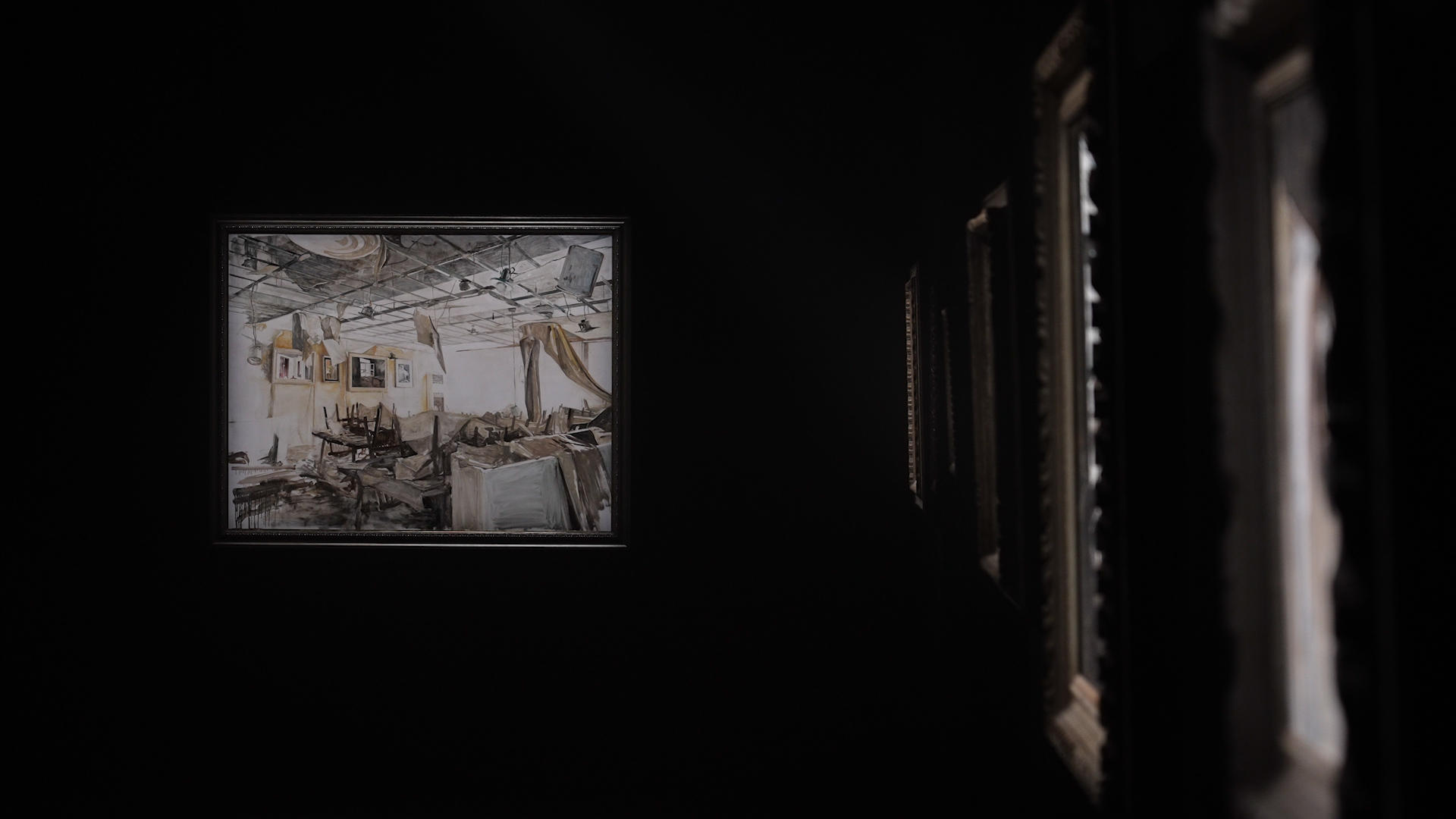 そして、ここでは冨安の絵画作品《Shadows of Wandering (The Paintings)》を紹介します。2021年1月に神奈川芸術劇場で開催されたKAAT Exhibitionで披露された廃墟を描いた絵です。KAAT Exhibitionにおいて廃墟をイメージしたインスタレーションの最後に控えていた印象深い絵です。