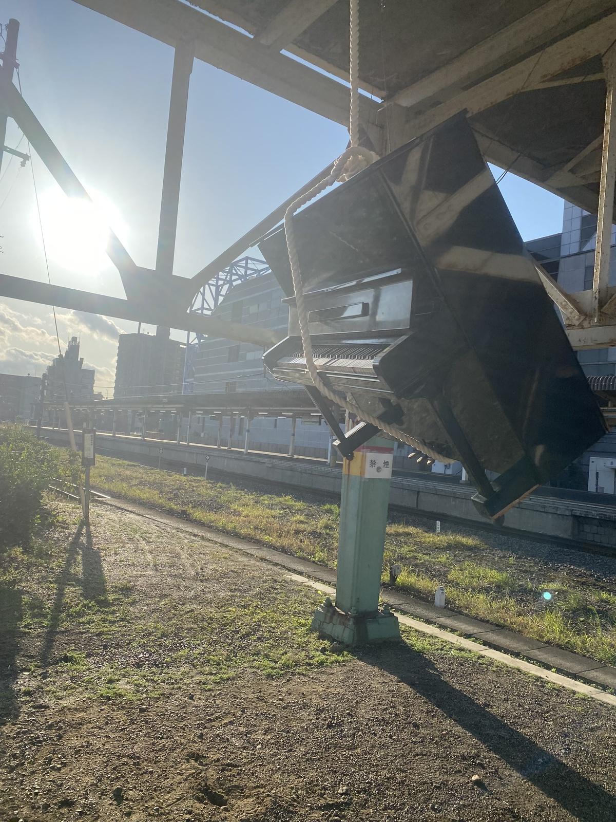 その一方で、動物やファウンドオブジェクトなどを通してユーモラスな一面も醸し出しているのがアブデスメッド作品の特徴です。今回いちはらアートミックスの最初の駅を飾っているピアノを使ったインスタレーションもそんな作品ではないでしょうか。小湊鉄道五井駅の歩道橋の下にピアノを吊り下げ、自動演奏で「カサブランカ」のワンシーンに出てくるジャズピアノが披露されます。”Play it Again(もう一度聴かせて)”というタイトルが示すように、演奏者が不在でありながら、この駅を出発する芸術祭の来訪者を音楽で送り出す音色が聴こえてくるようです。