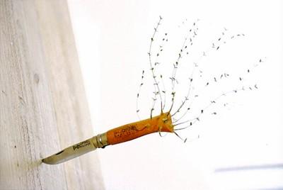 「野生の記憶 -ナイフ-」250x120x150mm、ナイフ・針金・紙、2008年