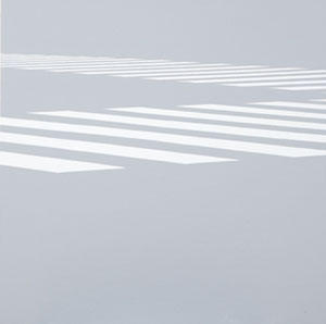 「呼吸」(2012)は、グレーと白のストライプだけで作られた作品ですが、これを観た人は横断歩道だと想像してしまうと思います。いつも人の持っている記憶を利用して作れないかと考えていて、見たものを出来るだけそのまま明快に画面に定着出来たらと思っています。また、作品に使うモチーフは「どこにでもあるもの」というルールを決めており、私の生活の中で記憶に自然と入ってきているものです。