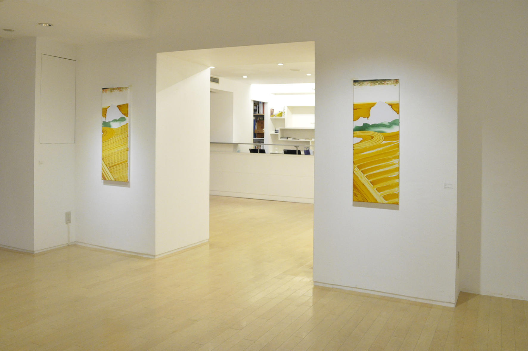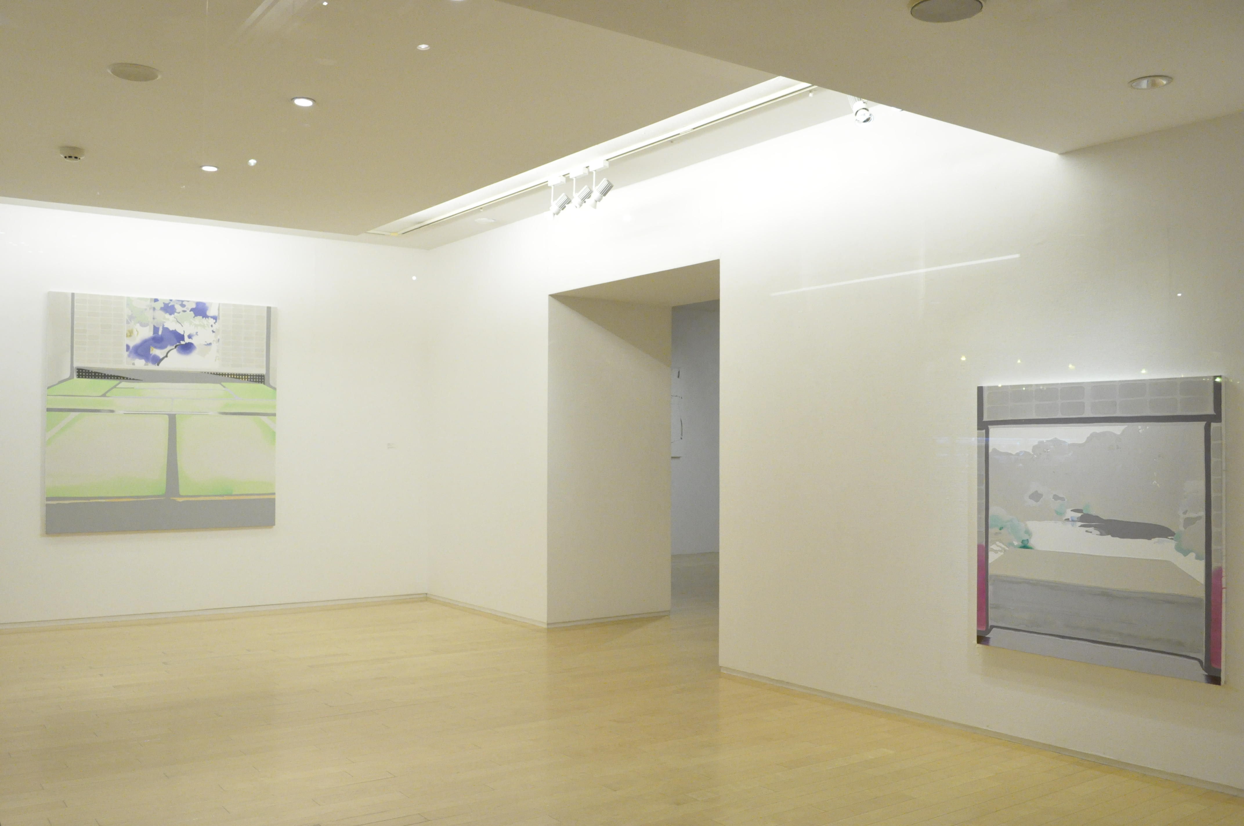N: 手前側に展示している作品のモチーフは、両方桂離宮の庭を描いています。桂離宮は建物だけでなく建物から見える風景、全ての配置、その全てが完成されたもので、そのままで美しいし、その完成された絶対性がモチーフとしてのリスクに思え、あえて描こうと思いました。