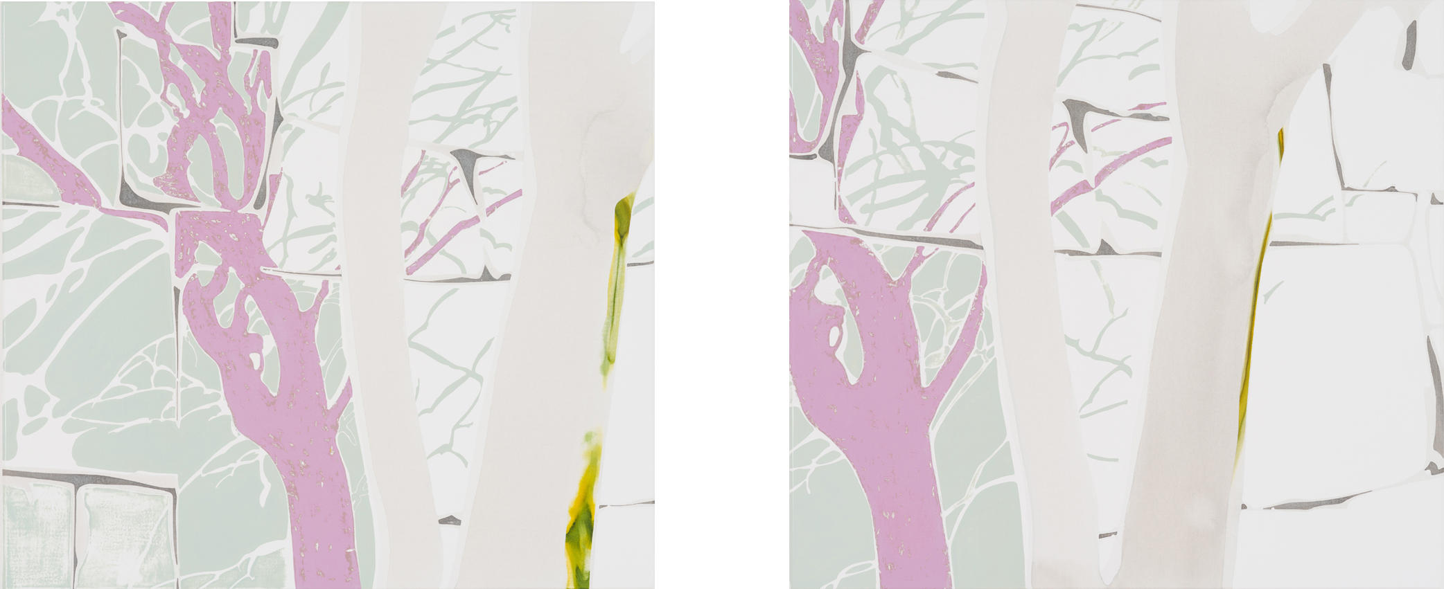 「2.8km/hr大阪城城壁 1、2」、キャンバスにアクリル、油彩、カシュー915 x 1010mm、2012年