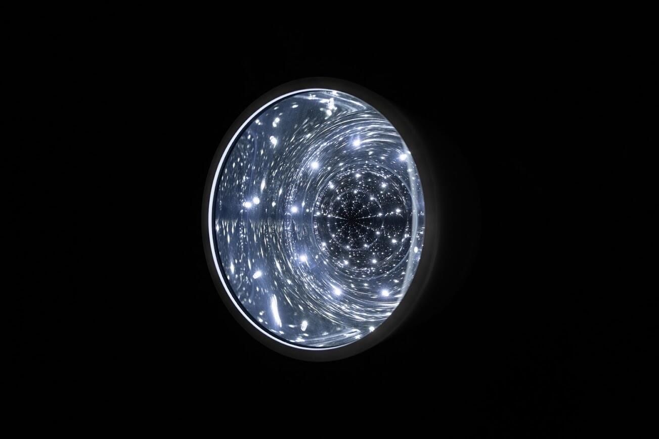 井村一登《Wall- ordered convexo - concave》2025 / Φ266×138 mm / ガラスミラー、アクリルミラー、LED、額装