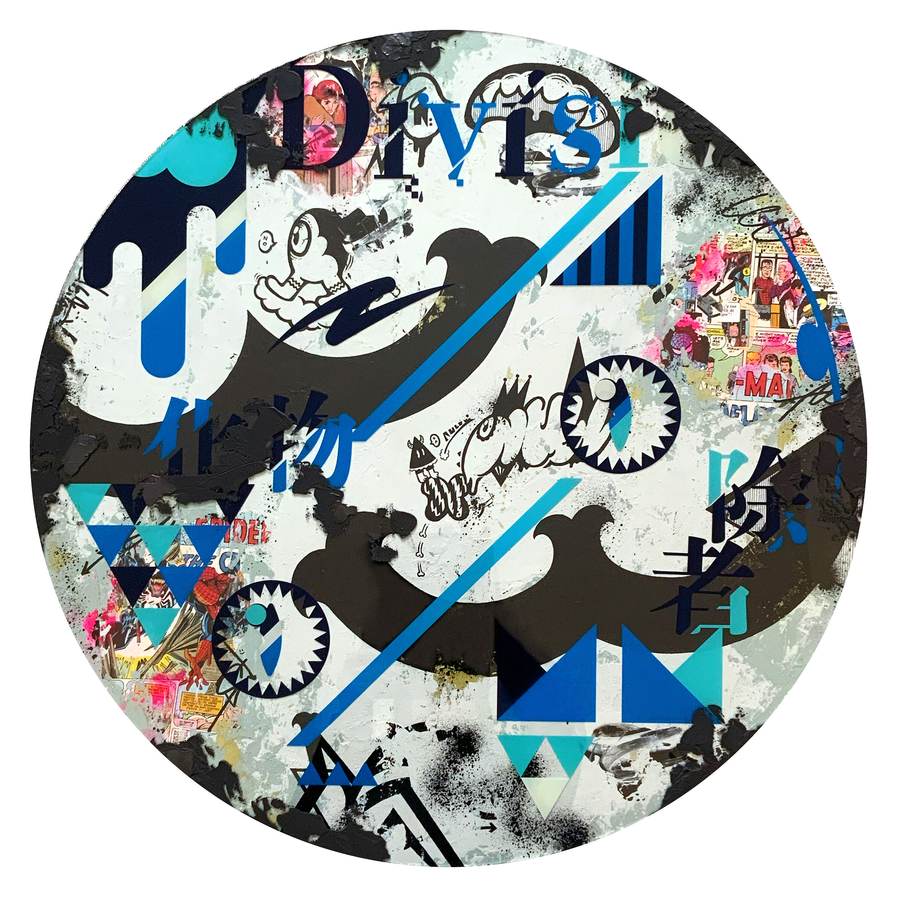 カネコタカナオ《drop2》2025 / Φ700 mm / アクリル、木製パネル、漫画雑誌、アクリル板(インクジェットプリント)