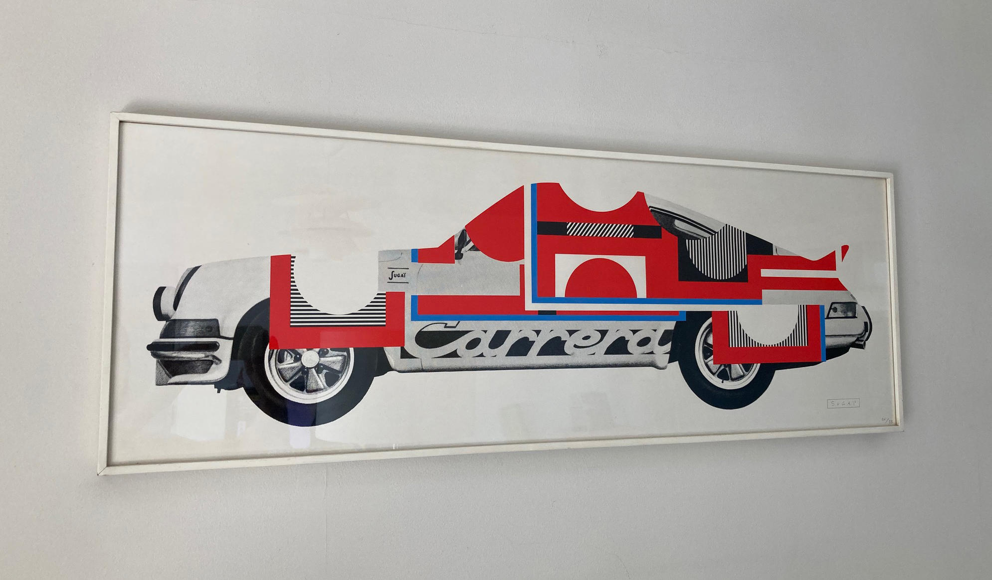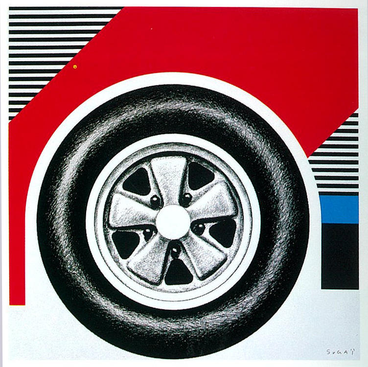 車好きのアーティストとして真っ先に思い浮かぶのが菅井汲(1919-1996年)。色鮮やかでポップな作品は、美術館などで眼にする機会が多いと思います。兵庫県に生まれ、阪神電鉄に就職してポスターなど商業デザインを担当していた菅井がパリに渡ったのは30代の頃。岡本太郎らと交流する中でスポーツカーに惹かれた菅井は、有名な1973年式ポルシェ911カレラRSを購入しました。しかしその後、重大な交通事故を起こし、一命はとりとめたものの完治するまでに長くかかったといいますが、すぐに同型のポルシェを買いなおしたそうです。