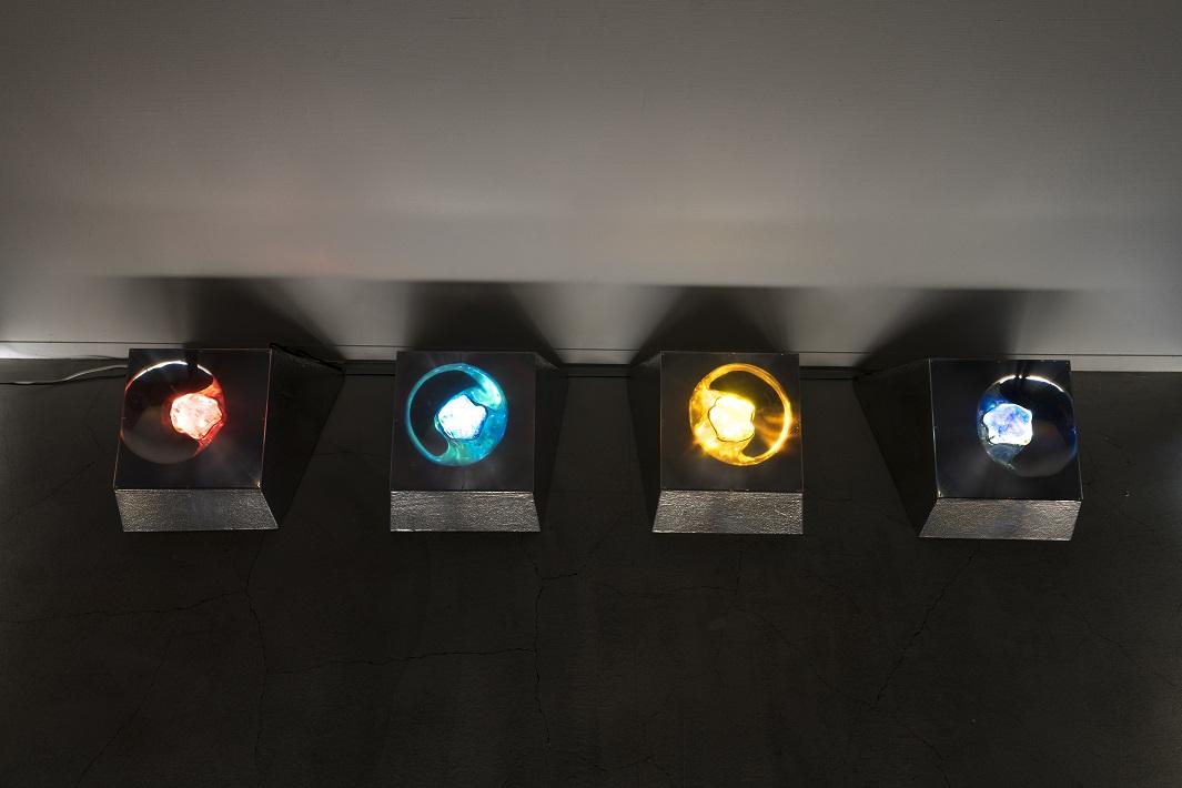 『リュミラー グランデ』/ポリエステル樹脂、フレネルレンズ、鉛シート、木、蛍光灯4W/各280×450×460/1999