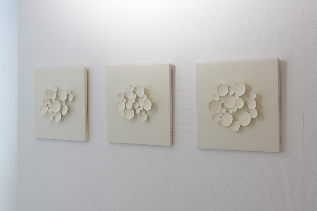 『エチュード』 / 木製パネル、紙にエンボス、切取 / 各280×280×35 / 2020